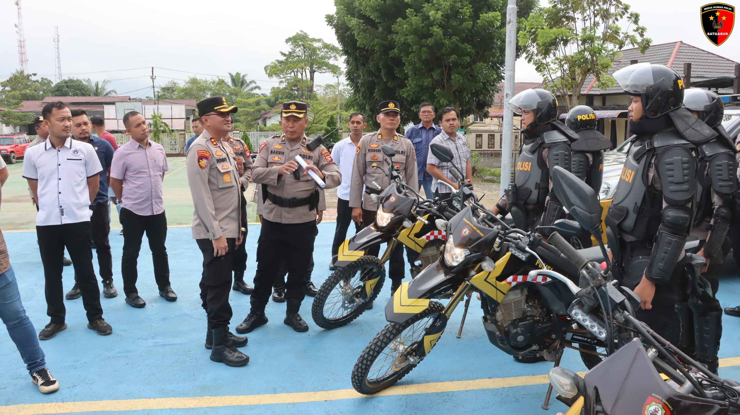 Usai memberikan arahan, Kapolres melakukan pengecekan terhadap sarana dan prasarana pengamanan, termasuk peralatan Dalmas, kendaraan taktis roda dua (R2) dan roda empat (R4), alat pemadam api ringan (APAR), hingga kendaraan AWC.