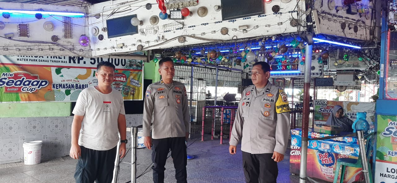 Kanit Binmas Polsek Talang Kelapa Polres Banyuasin AKP Heri Pujo Hartono didampingi Bhabinkamtibmas Aipda Ari Wibowo, kunjungi tempat wisata Danau Tanah Mas dan pemuka Agama Kristen di wilayah Kelurahan Tanah Mas, Rabu (4/11) pukul 11.00 WIB.