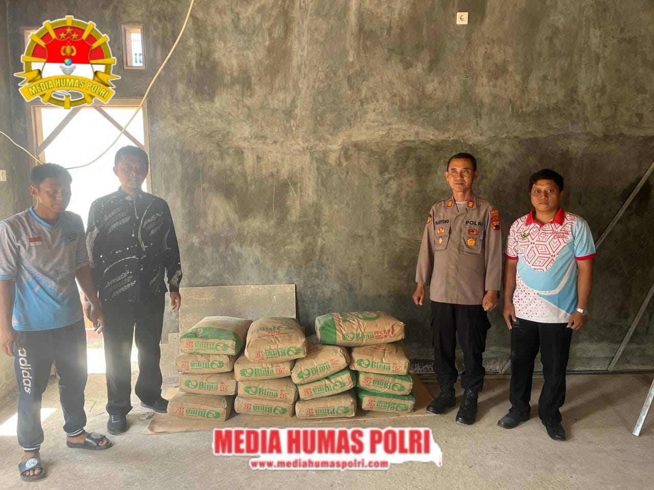 Kapolsek Ngadirojo AKP Pujoyono, S.H., bersama Kanit Samapta Aiptu Sarwanto, Bhabinkamtibmas Brigadir Yoga Ilham, S.H., dan Briptu Novan G., S.H., menyerahkan bantuan bahan bangunan berupa semen untuk mendukung kelanjutan pembangunan musholla tersebut.