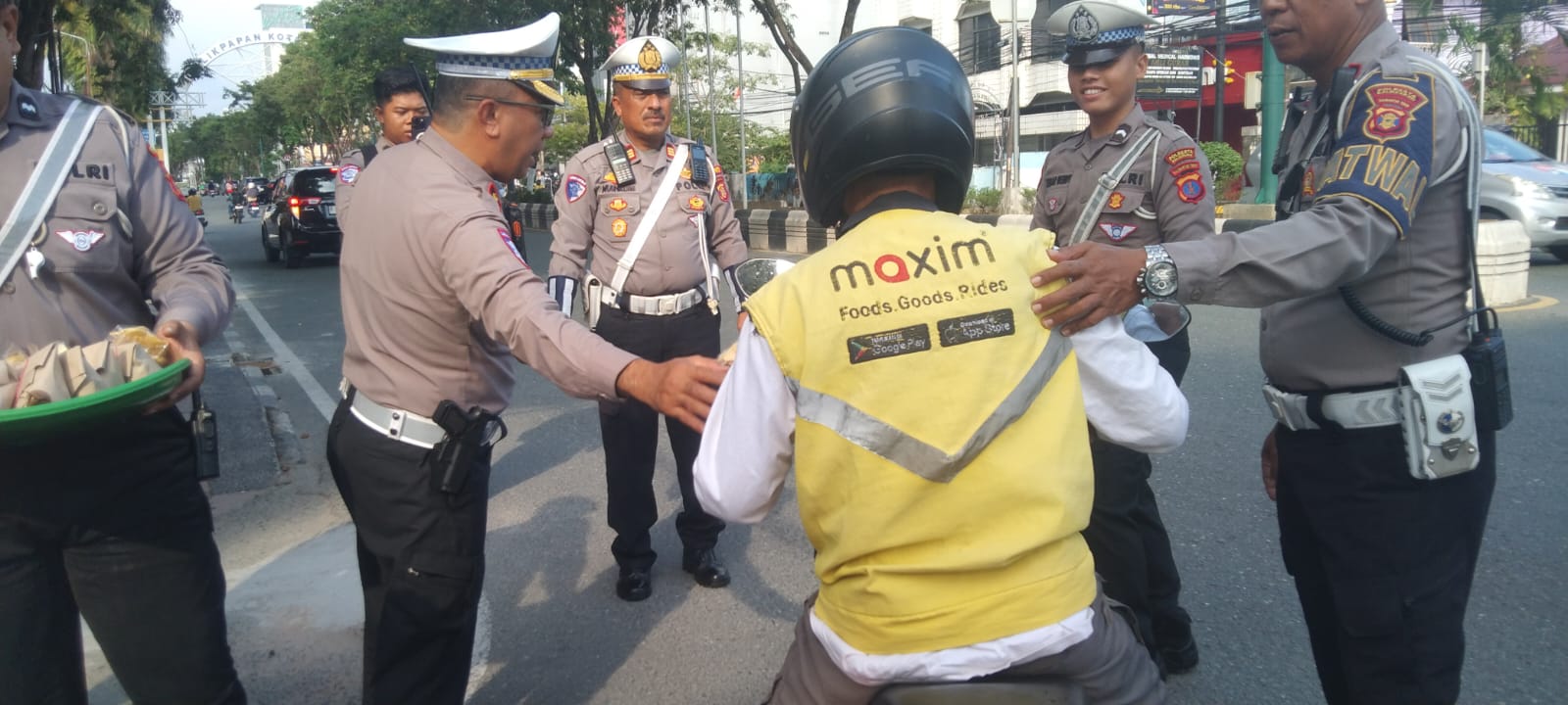 Paket makanan berupa nasi bungkus dan minuman kemasan diserahkan kepada pengendara roda dua, roda empat, hingga warga yang melintas di sekitar lokasi. Selain berbagi, jajaran polisi lalu lintas juga berdialog langsung dengan masyarakat serta menyampaikan imbauan pentingnya tertib berlalu lintas guna menekan angka kecelakaan fatal.