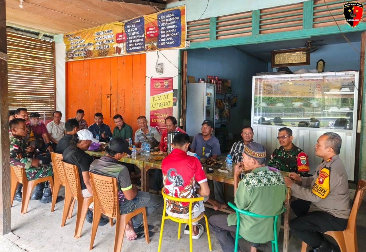 Polsek Entikong kembali menggelar kegiatan Jumat Curhat bersama masyarakat di wilayah Kecamatan Entikong, Kabupaten Sanggau, pada Jumat (3/10/2025). Agenda tersebut berlangsung di warung kopi milik Aziz, Dusun Entikong Benuan, Desa Entikong, sejak pukul 08.00 hingga 09.30 WIB.