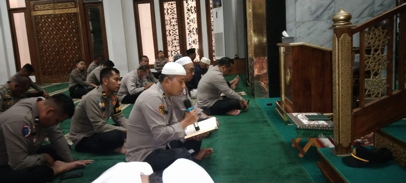 Usai shalat berjamaah, kegiatan dilanjutkan dengan pembacaan Surat Yasin yang dipimpin oleh Ipda Wisnu Cahyo Apriliyadi S.H kemudian diisi ceramah subuh oleh Kabag SDM Polresta Balikpapan Kompol Teguh Sanyoto, S.H.