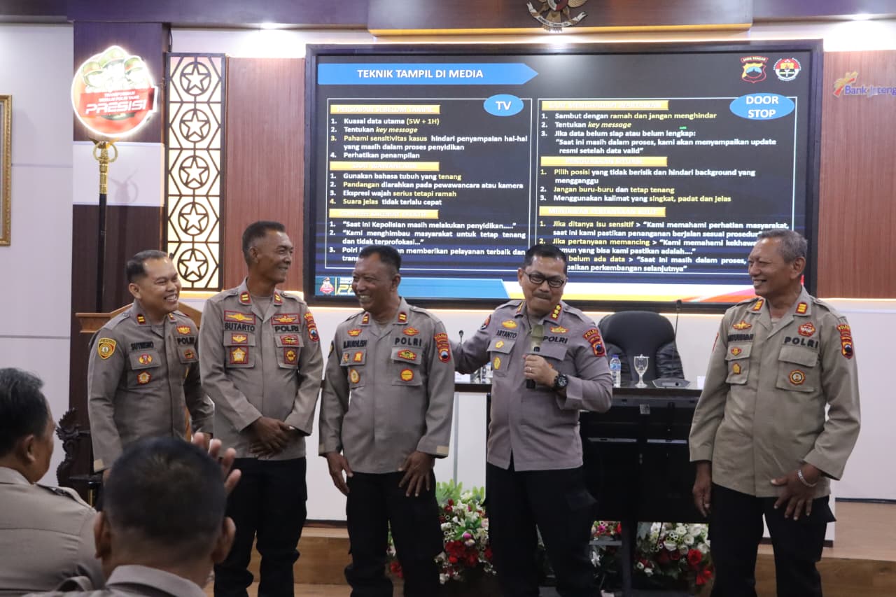 Dalam sambutannya, Kapolres Wonogiri AKBP Wahyu Sulistyo menyampaikan apresiasi atas kehadiran Kabid Humas Polda Jateng dan menekankan pentingnya kemampuan public speaking bagi setiap anggota Polri.