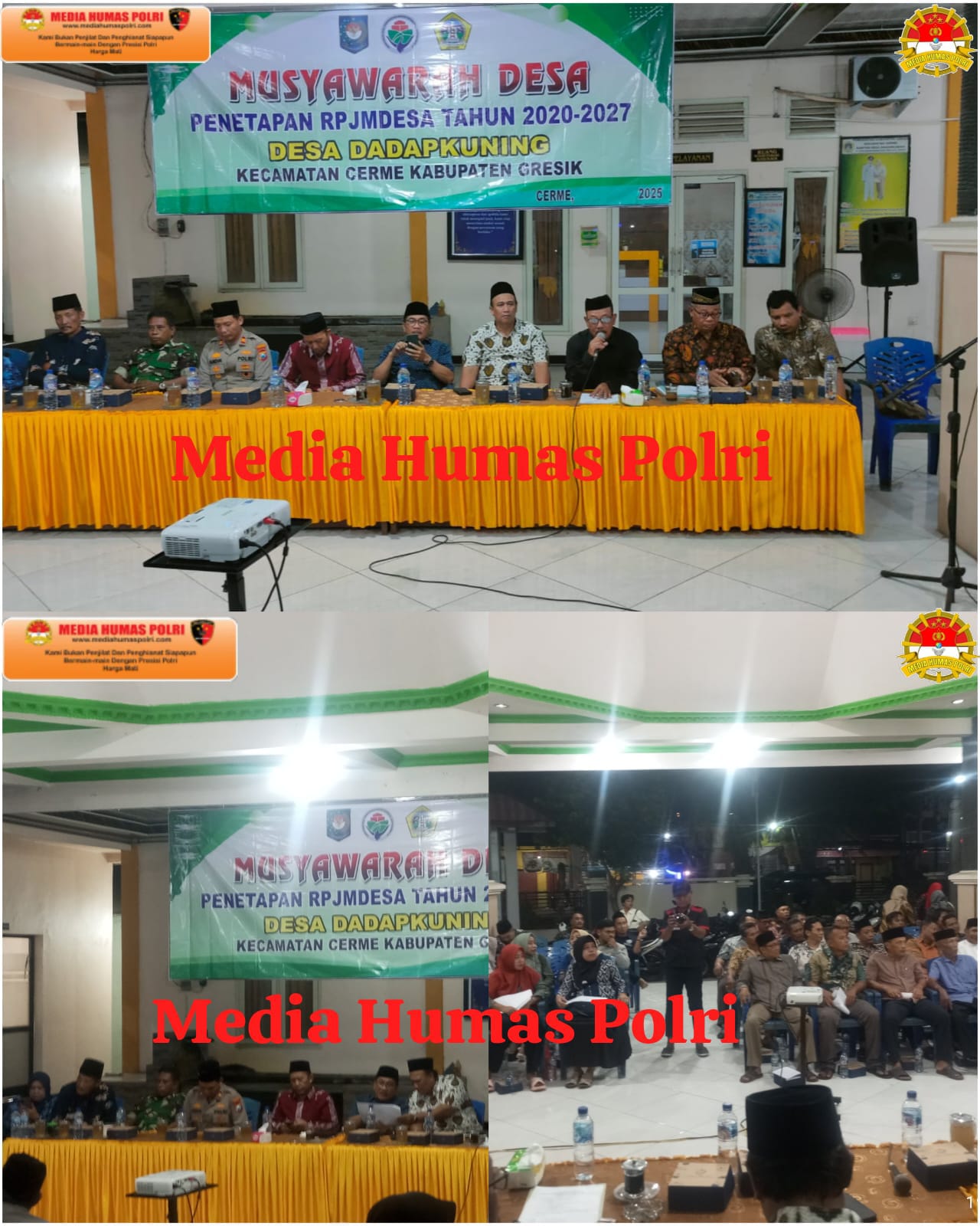 Pemerintah Desa Dadap Kuning, Kecamatan Cerme, Kabupaten Gresik menggelar Musyawarah Desa (Musdes) Penetapan RPJMDes Tahun 2020–2027, Kegiatan ini menjadi forum strategis untuk menyepakati arah pembangunan desa selama enam tahun ke depan, Pada Malam Hari Jum’at Tanggal (19-September-2025), Bertempat di Kantor Balai Desa Dadap Kuning Cerme.