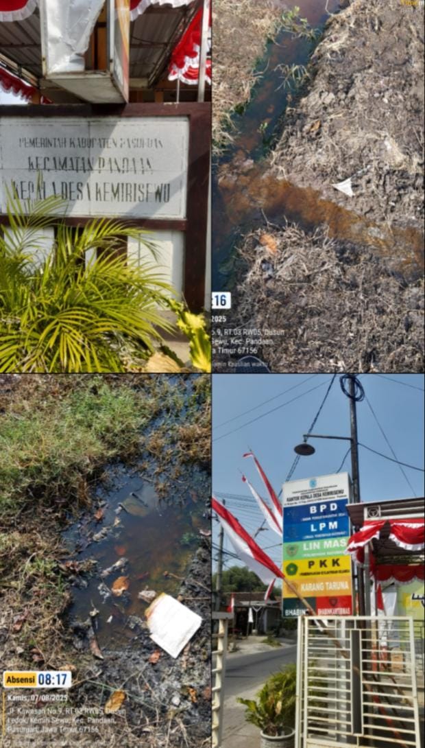 Perusahan – Perusahaan yang bergerak dalam bidang apapun seperti agar agar, arang, spon,diduga tidak menjalankan instalasi pengolahan air limbah industri ( IPAL ) sesuai peraturan yang berlaku.beralamat di kampung Jl kawasan No 09 RT 03/ RW 05 Dusun Ledok ,Desa Kemiri Sewu, kecamatan Pandaan kabupaten Pasuruan, perusahan ini diketahui membuang limbah industrinya langsung ke aliran parit yang lewat dari tanah TKD atau Bengkok ( milik kades, Kasun, Kaur ) diduga tanpa pengolahan yang memadai.Tindakan ini mengundang kekhawatiran masyarakat dan lingkungan.kamis ( 07/08/25).