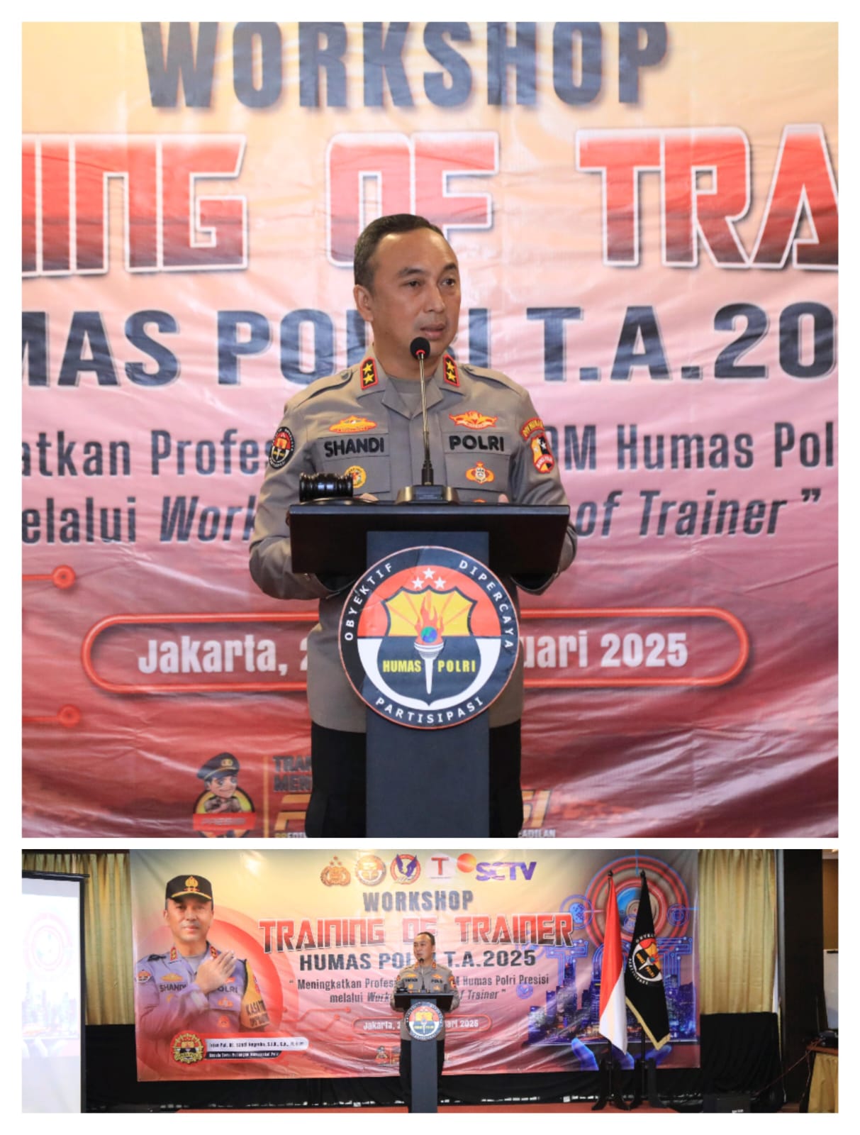 Kadiv Humas Polri Irjen. Pol. Sandi Nugroho membuka workshop training of trainer Polri Tahun Anggaran 2025. Workshop tersebut diikuti oleh 112 peserta yang tidak hanya personel Mabes Polri, tetapi juga polda jajaran.