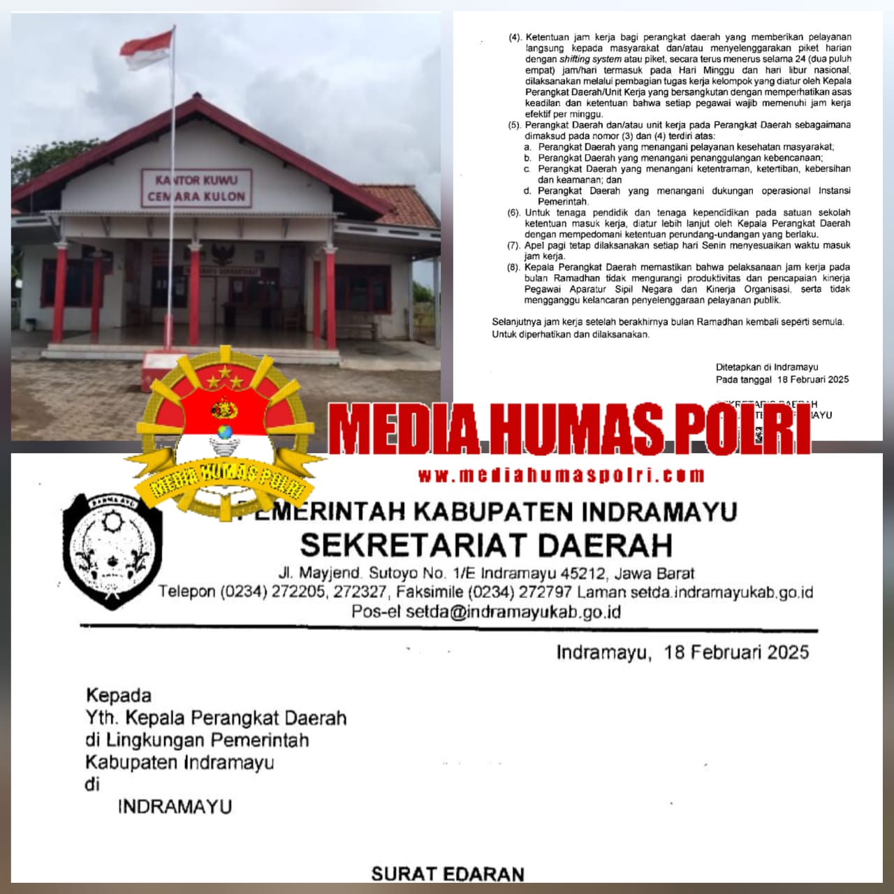 Perlu diketahui, Pemerintah Kabupaten Indramayu telah mengeluarkan Surat Edaran Nomor 00.8.3/329/Org Tahun 2025 mengenai jam kerja selama bulan Ramadhan.