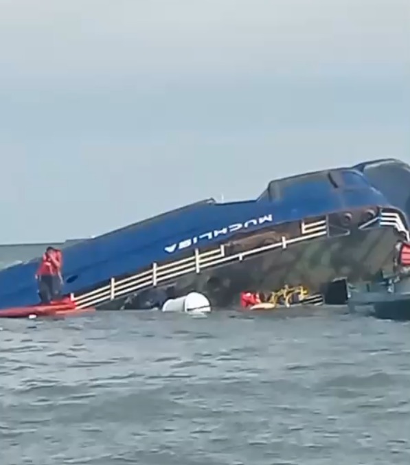 Sebuah Kapal Ferry KMP Muchlisa dengan rute Balikpapan-Penajam tenggelam di perairan pantai Penajam, Senin sore (5/5/2025).