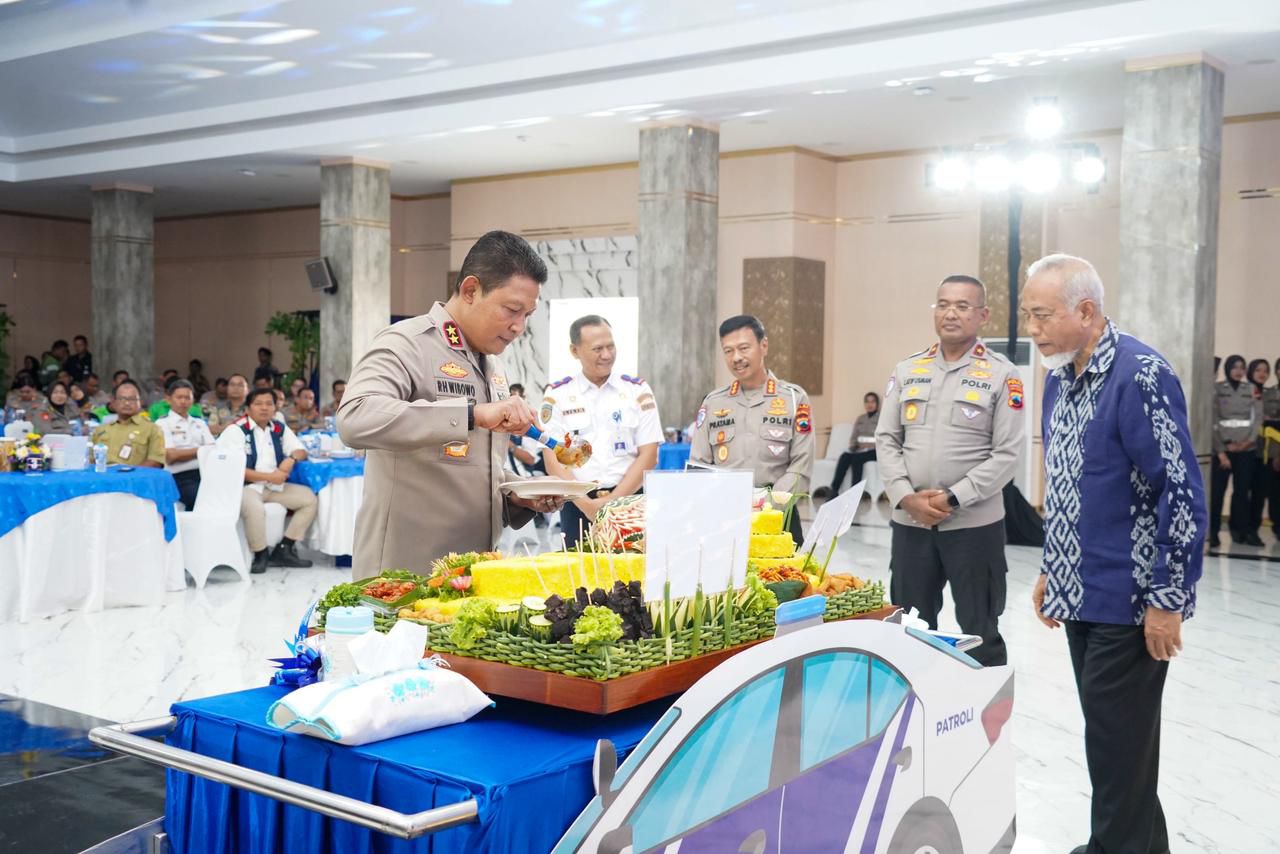 Kegiatan syukuran berlangsung sederhana namun khidmat, ditandai dengan pemotongan tumpeng oleh Kapolda didampingi Wakapolda Brigjen Pol Latif Usman dan Dirlantas Kombes Pol Pratama Adhyasastra. Hadir pula tamu undangan dari berbagai dinas dan instansi terkait serta komunitas otomotif dan ojek online yang menambah suasana kebersamaan.