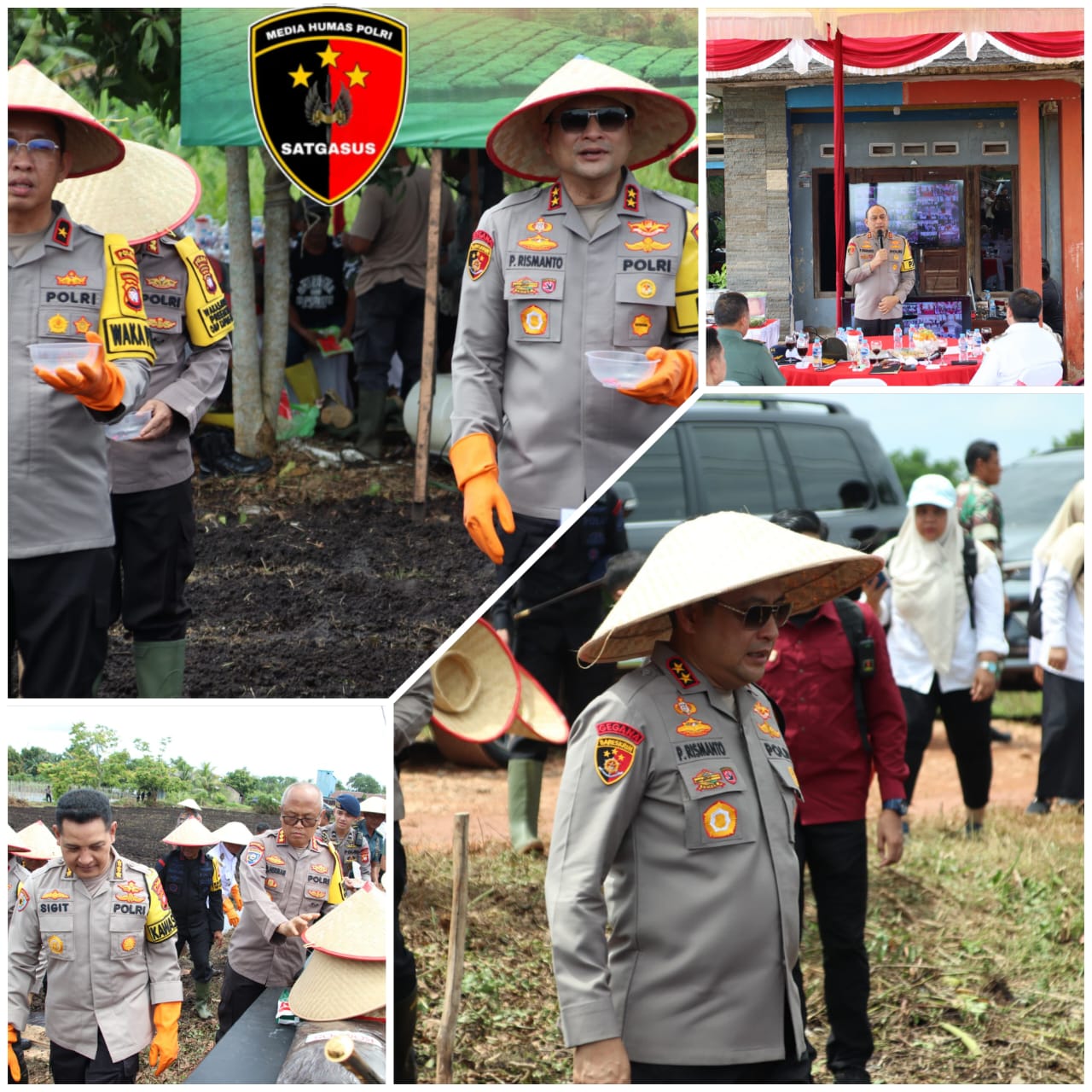 Dalam rangka mendukung Asta Cita Presiden Republik Indonesia yang salah satunya adalah Swasembada Pangan. Kapolda Kalbar Irjen Pol. Pipit Rismanto S.I.K., M.H. didampingi oleh Waka Polda Kalbar Beserta PJU Polda Kalbar, Forkopimda Kalbar dan Kelompok Tani Desa Rasau Jaya mengikuti kegiatan “Launching Gugus Tugas Polri Mendukung Ketahanan Pangan” melalui Zoom Meeting, bertempat di Desa Rasau Jaya, Kabupaten Kubu Raya. Rabu, ( 20/11/24 ).