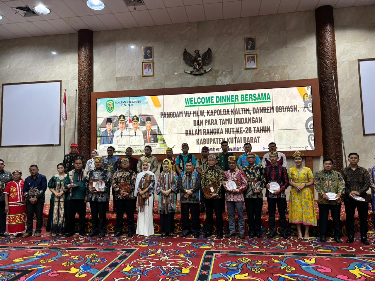 Dalam rangkaian kegiatan Gala Dinner memperingati Hari Ulang Tahun ke-26 Kabupaten Kutai Barat yang digelar di Gedung ATJ, Selasa (4/11/2025) malam, Dewan Adat Kabupaten Kutai Barat menganugerahkan sejumlah Gelar Adat kepada jajaran Forkopimda Provinsi Kalimantan Timur, termasuk Kapolda Kalimantan Timur Irjen Pol Endar Priantoro, S.H., S.I.K., C.F.E., M.H.