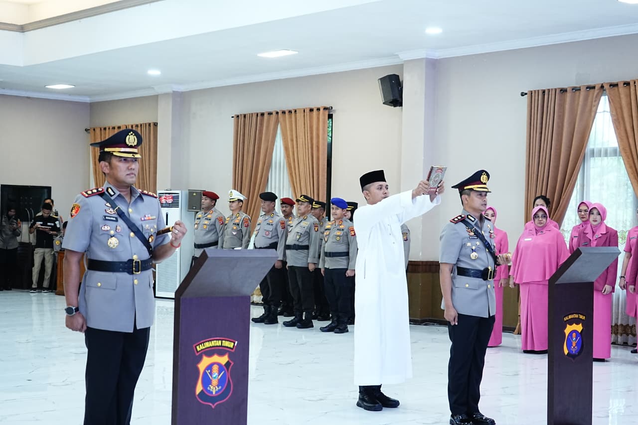 Upacara Serah Terima Jabatan (Sertijab) sekaligus pelantikan dipimpin langsung Kapolda Kaltim Irjen Pol Endar Priantoro, S.H., S.I.K., C.F.E., M.H., di Gedung Mahakam Mapolda Kaltim, Balikpapan, Kamis (21/8/2025). Turut hadir Wakapolda Kaltim Brigjen Pol Dr. H. M. Sabilul Alif, S.H., S.I.K., M.Si., para pejabat utama, serta kapolres jajaran.