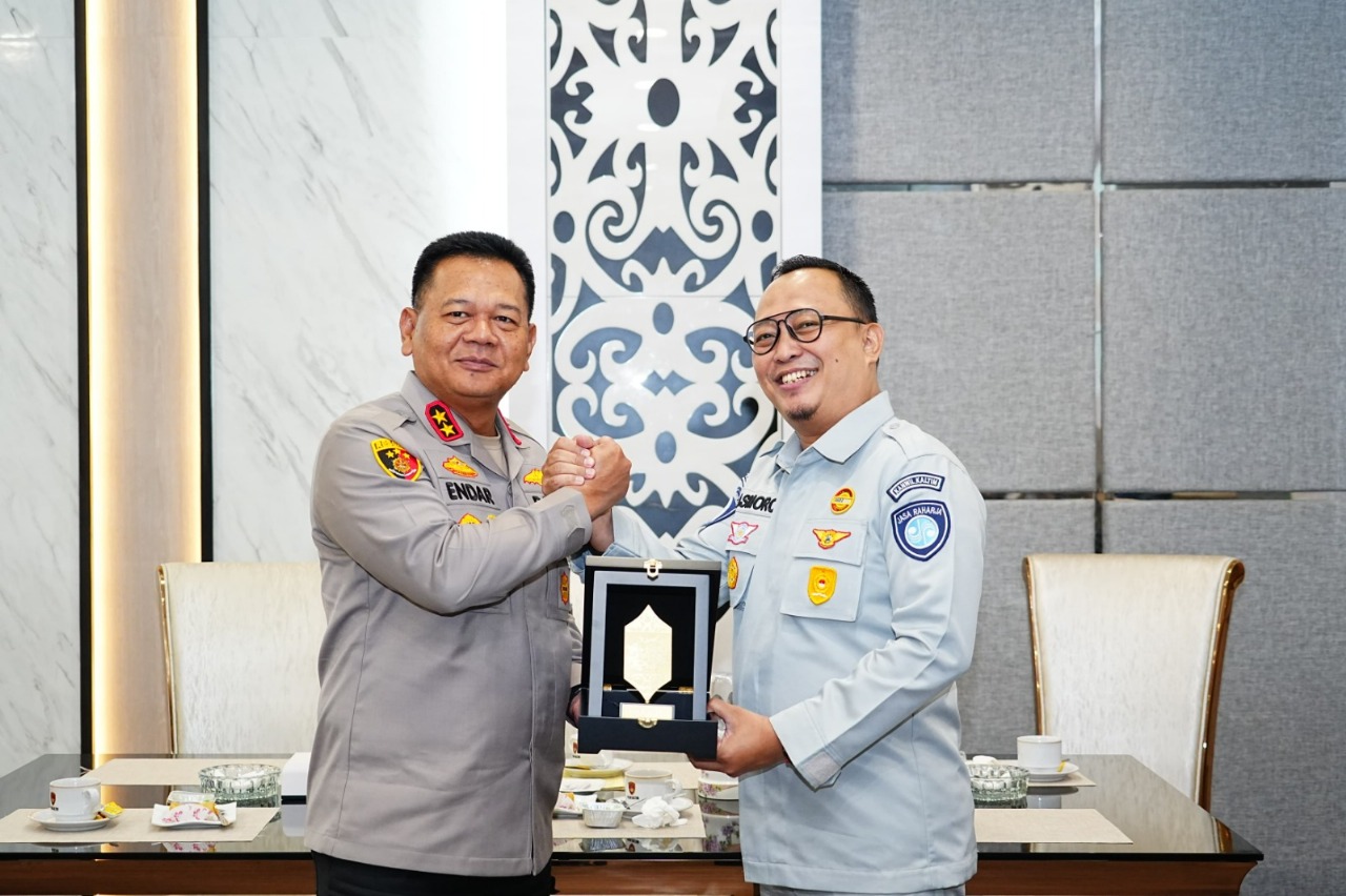 Kepala Kepolisian Daerah Kalimantan Timur, Irjen Pol. Endar Priantoro, S.H., S.I.K., C.F.E., M.H., menerima kunjungan audiensi dari jajaran pimpinan PT Jasa Raharja Wilayah Kalimantan Timur dan Utara (Kaltimra), Rabu (14/5/2025), di ruang kerja Kapolda Kaltim.