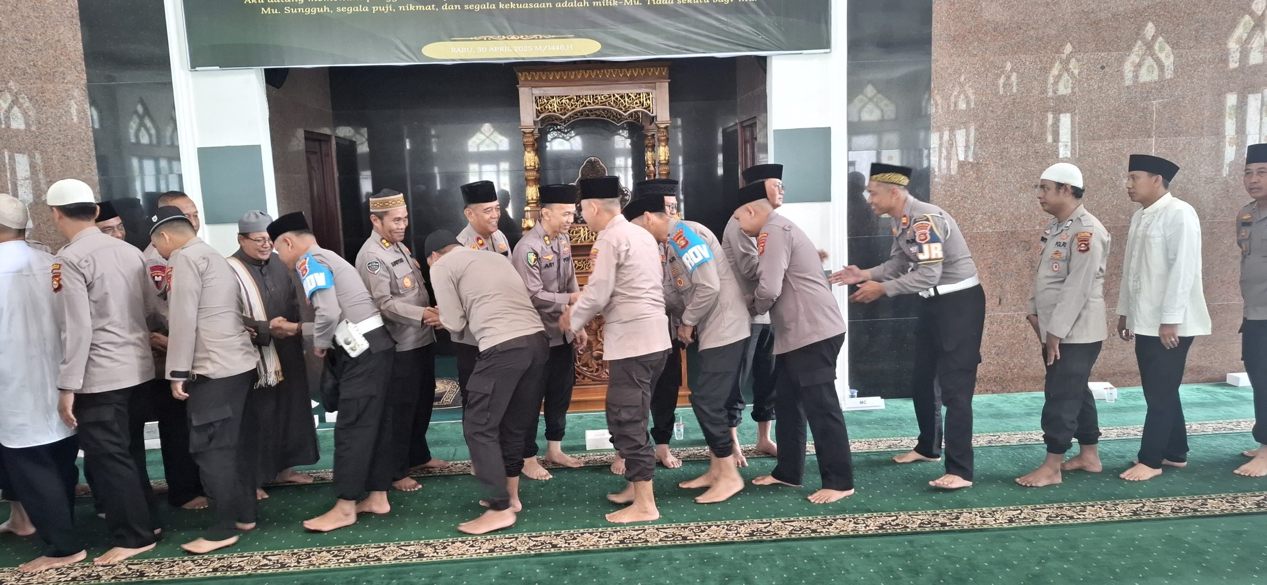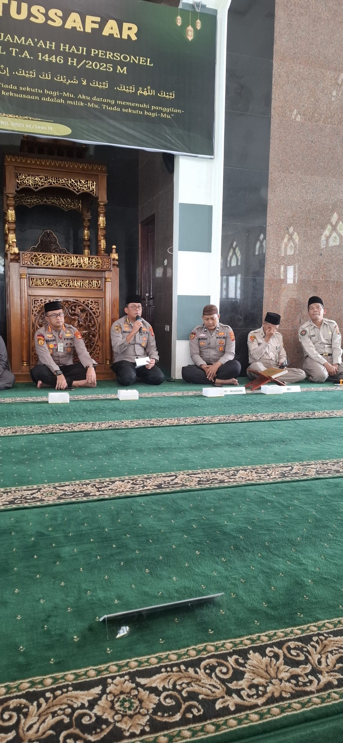Kapolda Sums Irjen Pol Andi Rian Djajadi diwakili Karo SDM Polda Sumsel Kombes Pol Sudrajad Hariwibowo SIK MSi melepas 44 personel di jajarannya yang akan melaksanakan ibadah haji ke Tanah Suci pada 1446 Hijriah/2025 di Masjid Assa’adah Polda Sumsel di Palembang Rabu 30 April 2025.