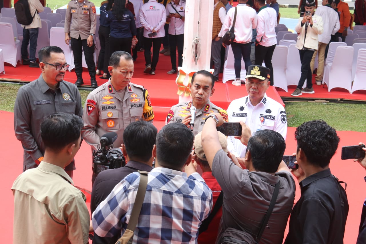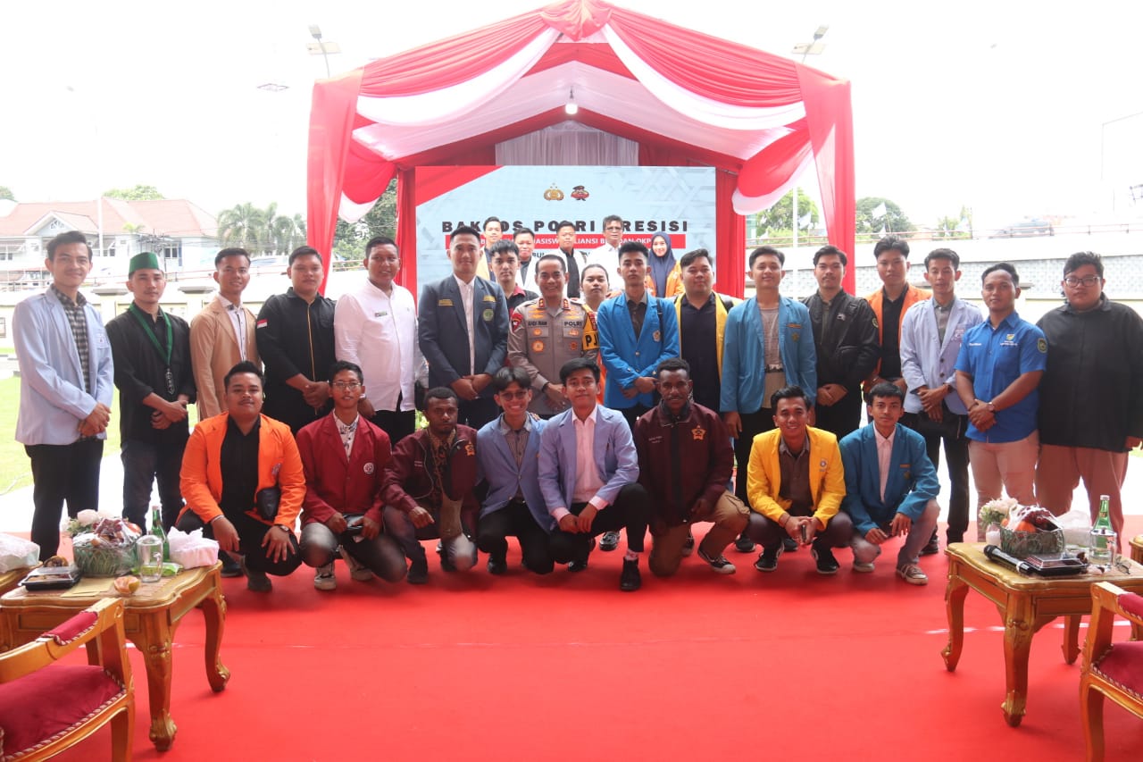 Kapolda Sumsel didampingi unsur Forkopimda Sumsel dan seluruh perwakilan aliansi mahasiswa yang ada di Provinsi Sumsel.