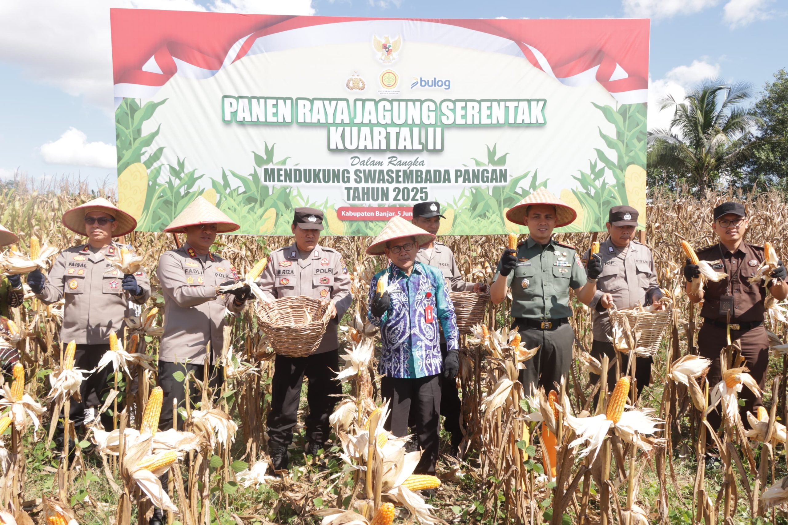 Kapolres Banjar, AKBP Dr. Fadli, menghadiri kegiatan Panen Raya Jagung Serentak Kuartal II Tahun 2025 yang digelar di Teluk Sanggar, Desa Bincau, Kecamatan Martapura, Kabupaten Banjar, pada Kamis (5/6). Kegiatan ini merupakan bagian dari dukungan Polri terhadap program swasembada pangan nasional tahun 2025, sesuai dengan visi Asta Cita Presiden RI.