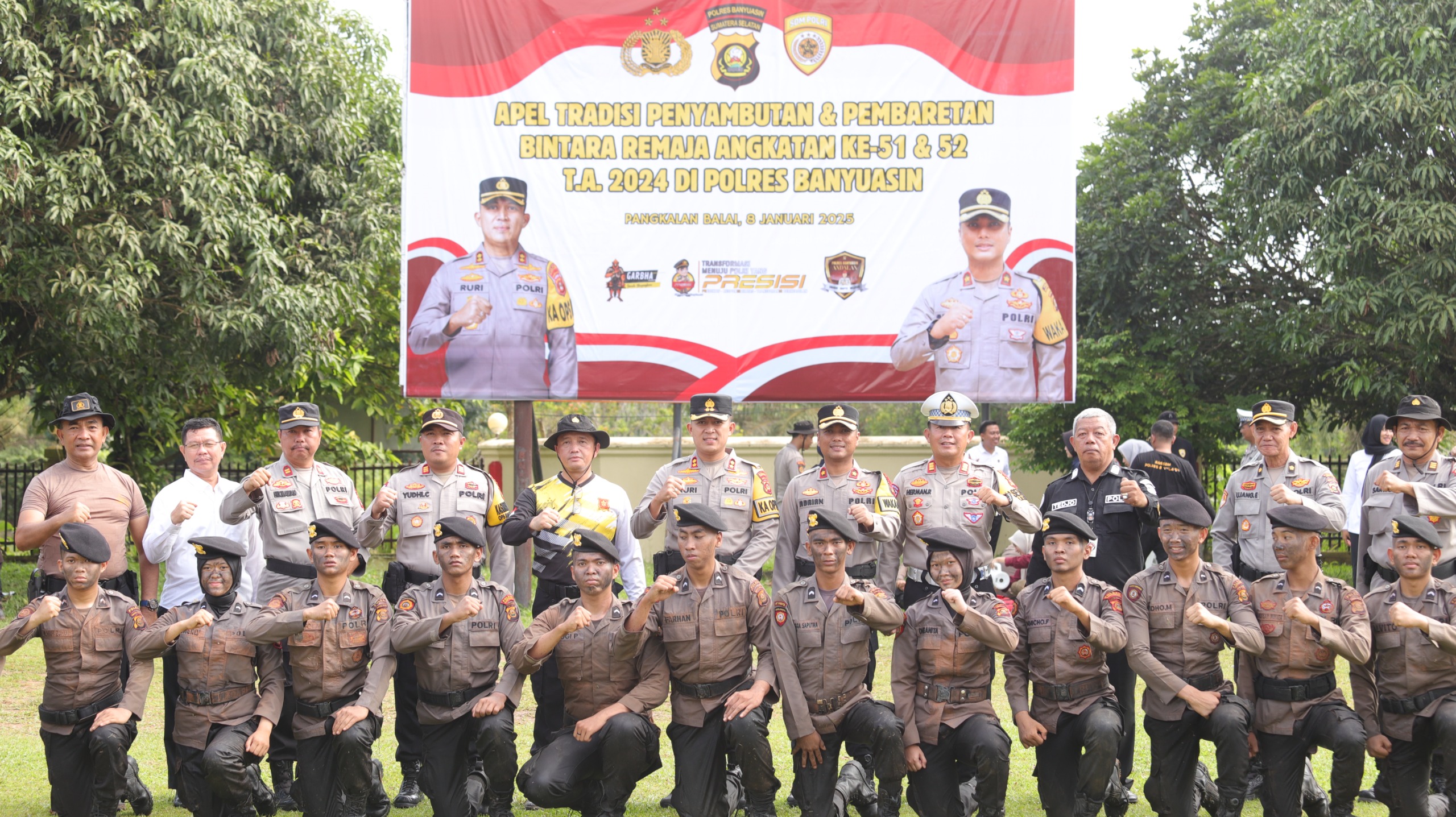 Kapolres Banyuasin AKBP Ruri Prastowo SH SIK MIK memimpin apel tradisi dan pembaretan bagi Bintara Remaja Angkatan ke-51 dan 52 di halaman Polres Banyuasin. Acara ini dihadiri oleh seluruh jajaran Polres Banyuasin dan diikuti oleh 10 personel Bintara Remaja Angkatan ke-51 dan 11 personel Angkatan ke-52 yang baru saja menyelesaikan masa pendidikan mereka.