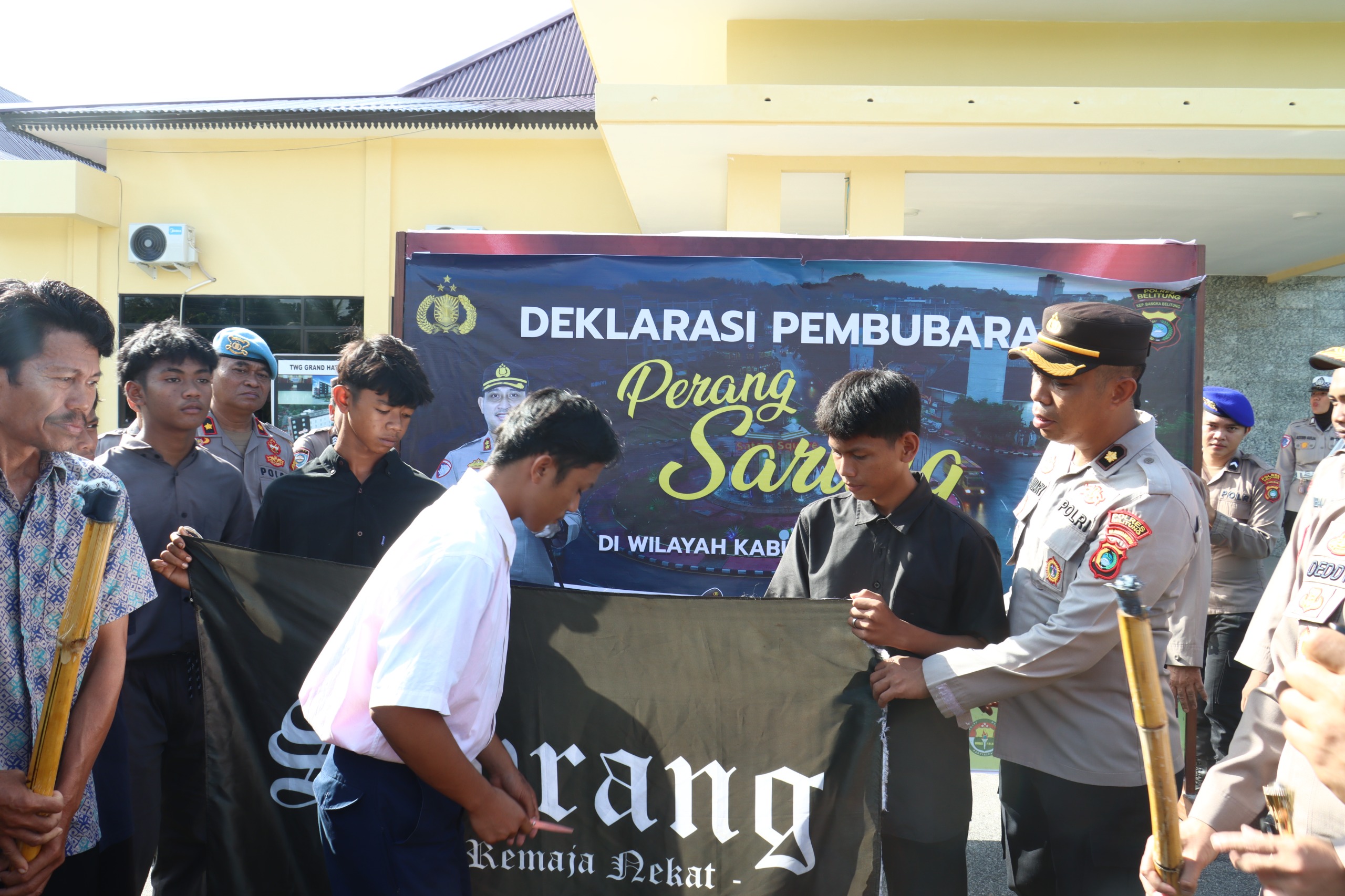 Kapolres Belitung dalam sambutannya menegaskan bahwa perang sarung bukan sekadar permainan, tetapi telah berkembang menjadi tindakan yang berpotensi membahayakan keselamatan dan ketertiban masyarakat.