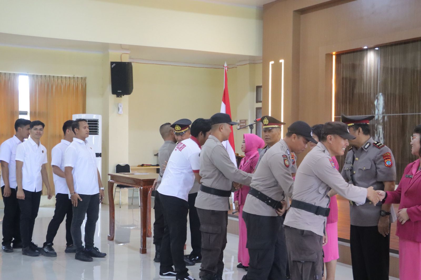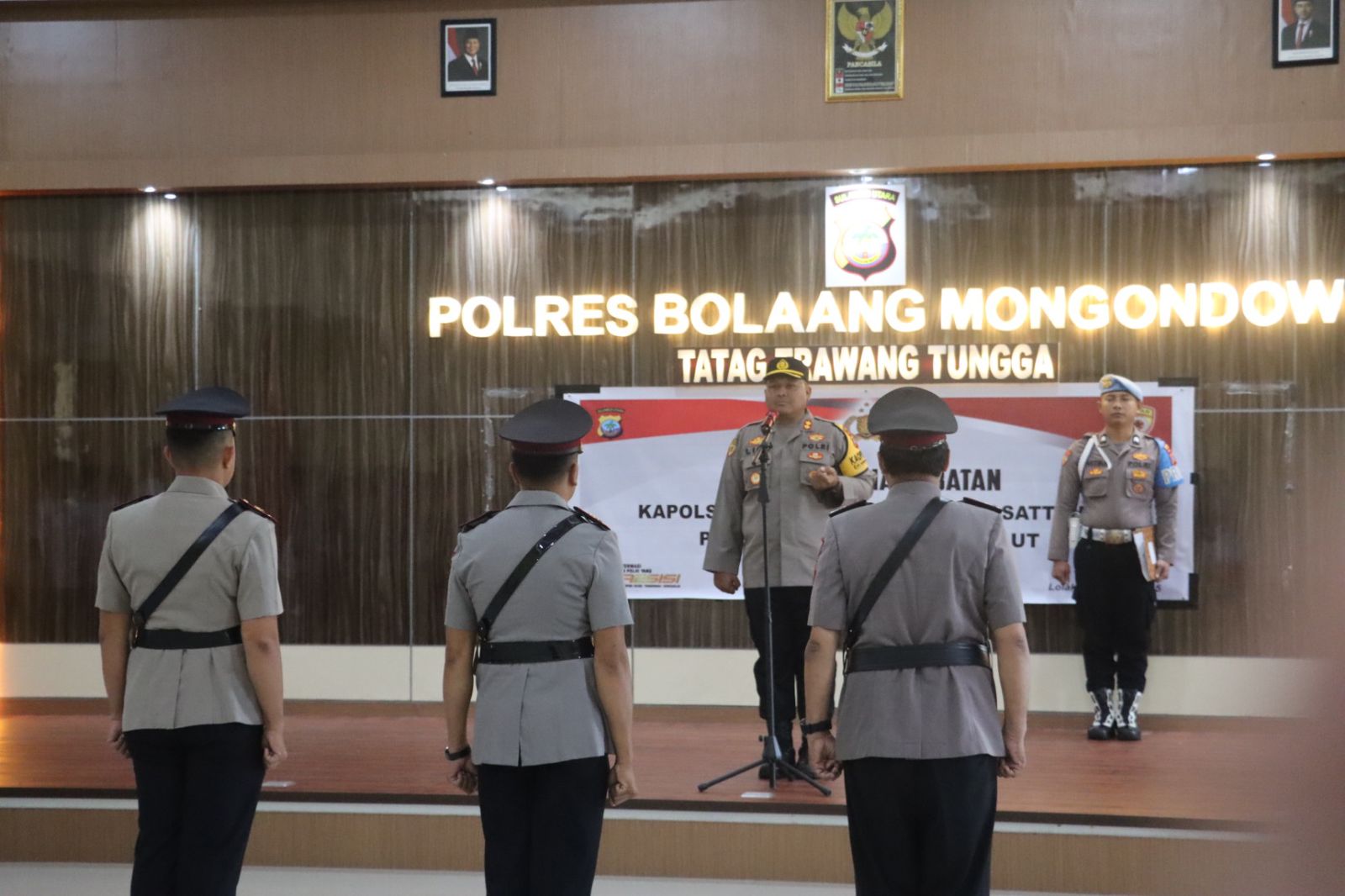 Kapolres Bolmong AKBP Lido Ratri Antoro, S.H., S.I.K., M.M. memimpin Upacara Serah Terima Jabatan (Sertijab) Kasat Tahti Polres Bolmong dan Kapolsek Dumoga Timur. Kegiatan berlangsung di Ruang Aula Tatag Trawang Tungga Polres Polres Bolmong. Rabu (15/01/2025). Pagi.