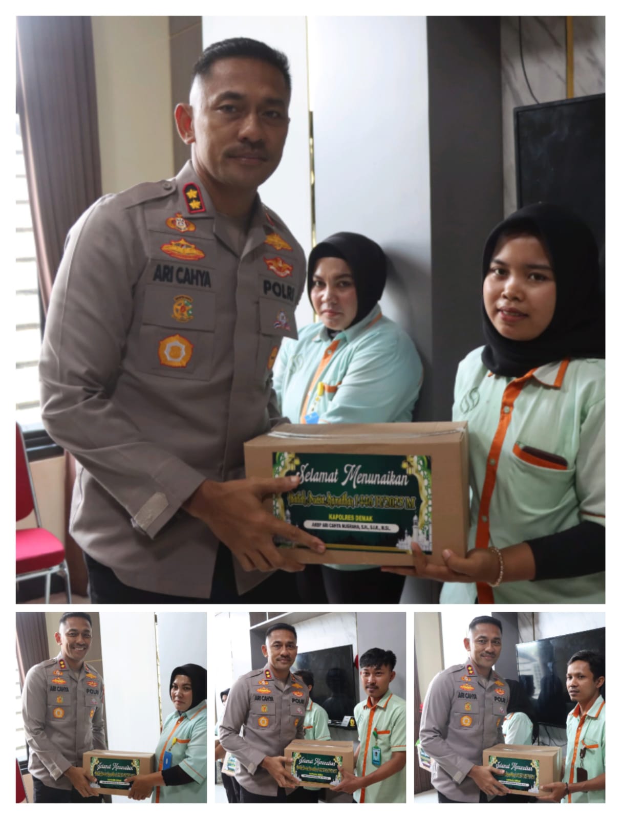 Kapolres Demak, AKBP Ari Cahya Nugraha, menunjukkan kepedulian sosial dengan memberikan bantuan sosial (bansos) kepada karyawan cleaning service di lingkungan Polres Demak, Minggu (16/3/2023).