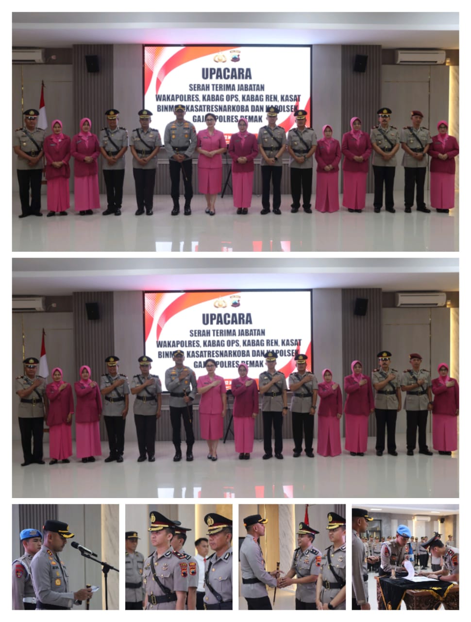 Polres Demak menggelar upacara Serah Terima Jabatan (Sertijab) Wakapolres, sejumlah Pejabat Utama (PJU) Polres Demak, serta Kapolsek Gajah.