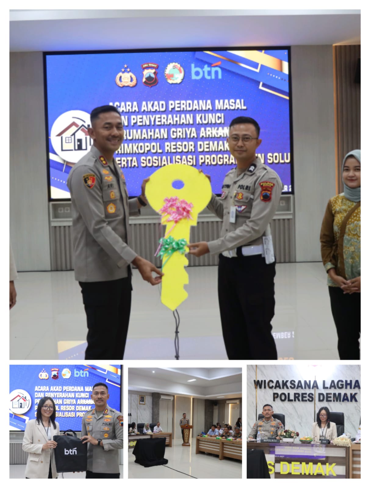 Kepolisian Resor (Polres) Demak, Jawa Tengah, meresmikan perumahan bersubsidi Griya Arkana yang diperuntukkan bagi anggota Polri dan Aparatur Sipil Negara (ASN) di lingkungan Polres Demak.