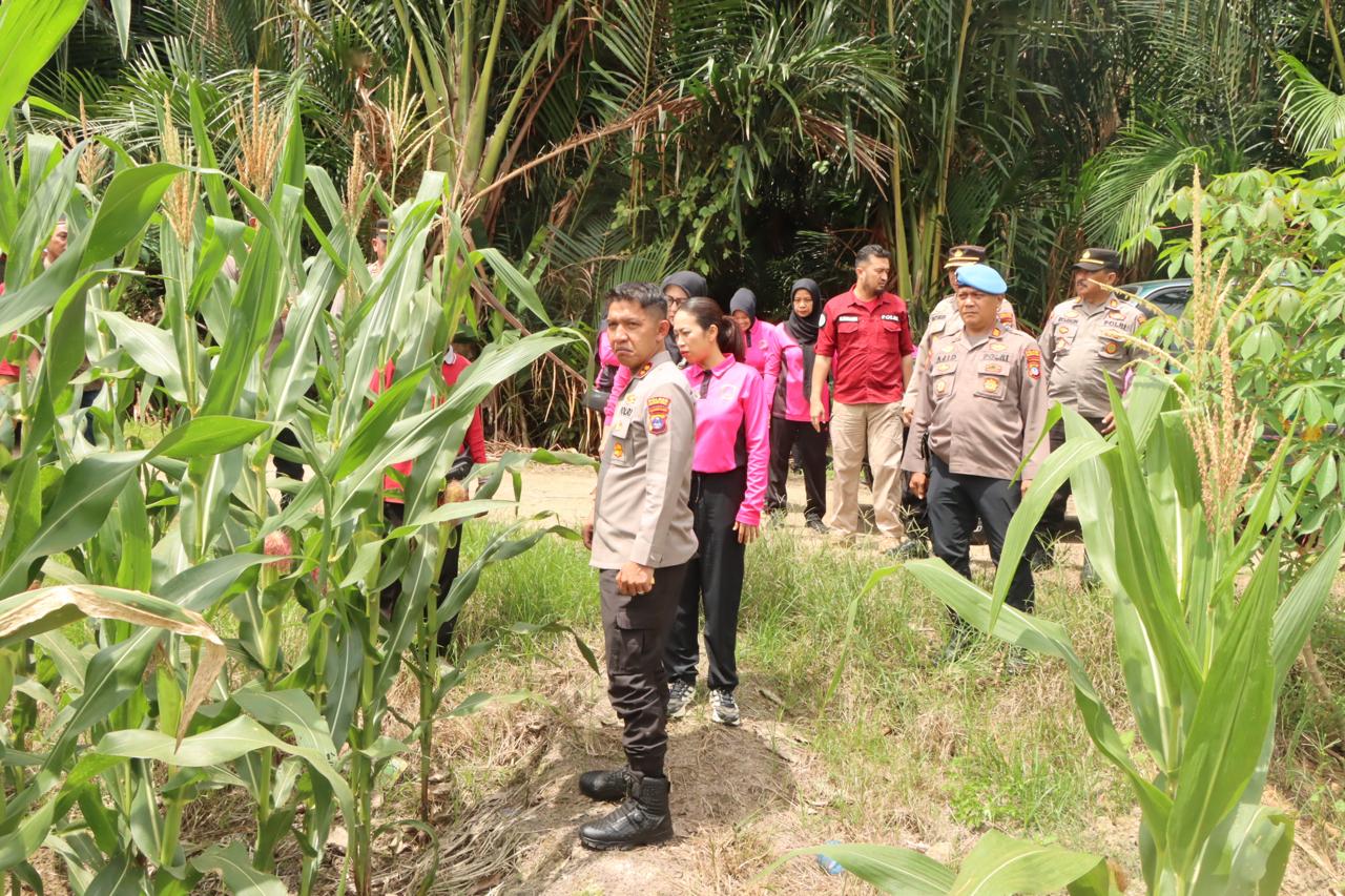 Kapolres Hulu Sungai Tengah (HST) AKBP Jupri JHP Tampubolon, S.I.K., M.Si bersama Ketua Bhayangkari Cabang HST Ny. Mei Jupri serta Pejabat Utama Polres HST melaksanakan pengecekan perkembangan jagung hibrida di Desa Awang, Kecamatan Batang Alai Utara Kab. hST, Selasa (16/9/2025).
