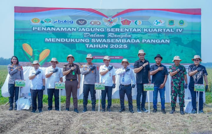 Kapolres Karawang, AKBP Fiki Novian Ardiansyah, menghadiri kegiatan Penanaman Jagung Serentak Kuartal IV dalam rangka mendukung swasembada pangan tahun 2025. Kegiatan ini dilaksanakan secara virtual melalui Zoom Meeting bersama Wakil Presiden.
