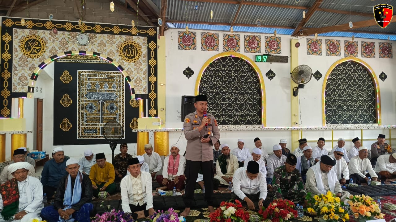 Kapolres Ketapang AKBP Muhammad Harris, S.H., S.I.K., M.I.K., CPHR menghadiri kegiatan Tabligh Akbar dalam rangka memperingati Maulid Nabi Muhammad SAW 1447 H / 2025 M yang digelar di Pondok Pesantren Hidayaturrahman, Kecamatan Delta Pawan, Kabupaten Ketapang, pada Minggu (21/9/2025).
