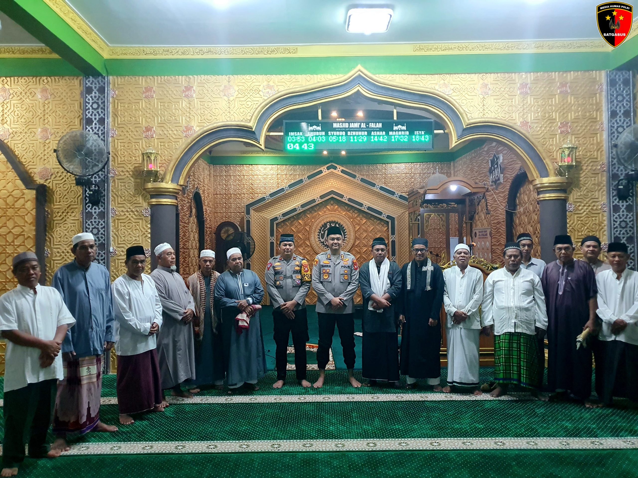 Kegiatan diakhiri dengan ramah tamah antara Kapolres, jajaran kepolisian, dan jamaah Masjid Al-Falah.( Lies )