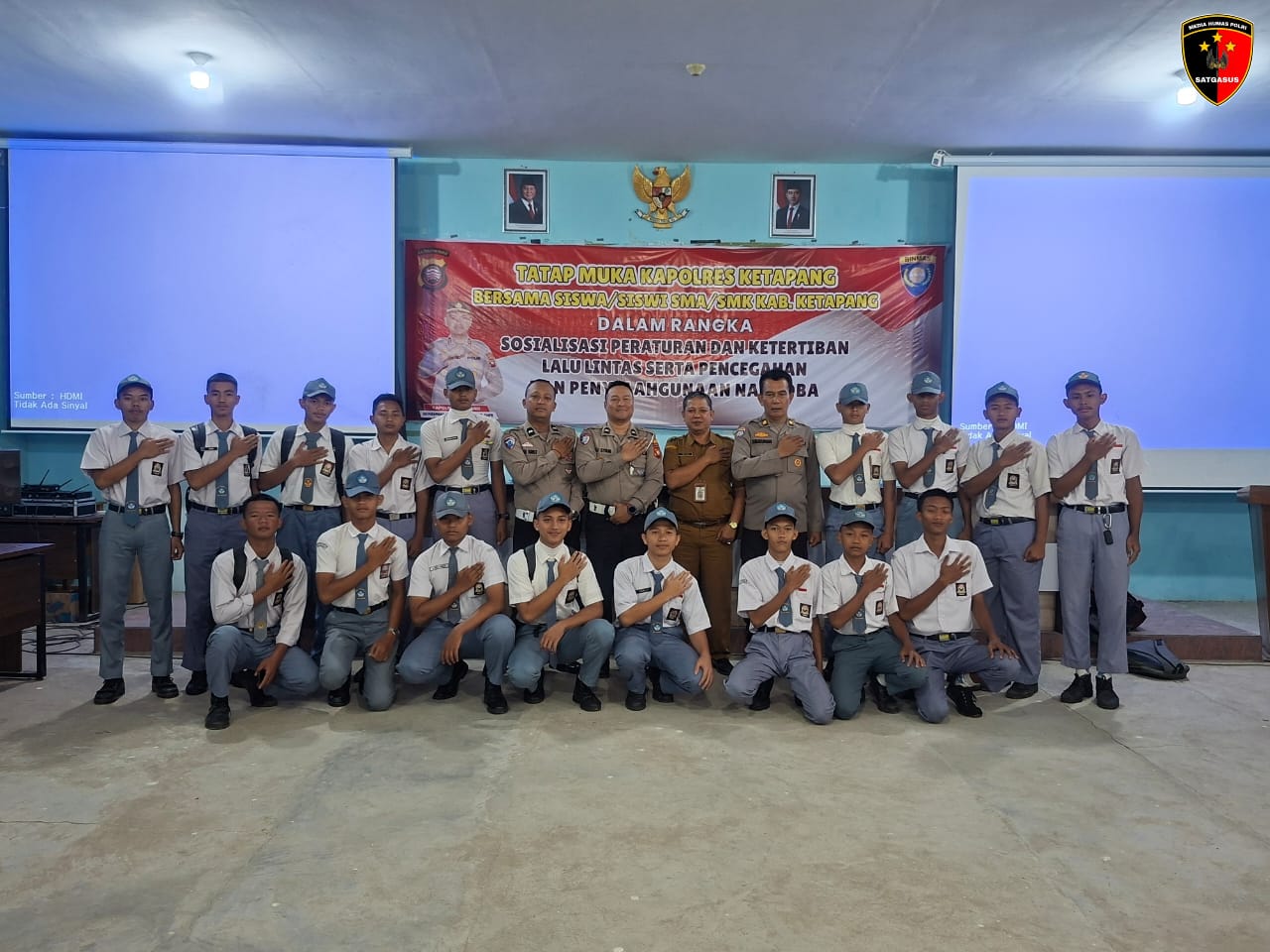 Untuk Mempererat silaturahmi serta membangun sinergitas antara kepolisian dengan pelajar, Kapolres Ketapang Mengarahkan Kasat Narkoba AKP Aris Pramuji Widodo,S.AP dan KBO Sat Binmas Polres Ketapang, Iptu Manusun Simatupang, S.H., melaksanakan kegiatan tatap muka bersama siswa-siswi SMK Negeri 2 Ketapang yang berlokasi di Jalan Gatot Subroto, Desa Payak Kumang, Kecamatan Delta Pawan, Kabupaten Ketapang, Senin, 29 September 2025