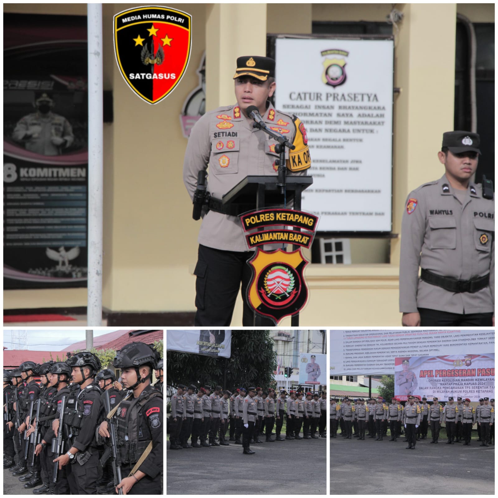 Kapolres Ketapang, AKBP Setiadi, S,H., S.I.K., M.H., memimpin apel pergeseran personel untuk pengamanan Tempat Pemungutan Suara (TPS) dalam rangka Pemilu kepala daerah tahun 2024. Apel berlangsung di halaman Mapolres Ketapang di Jalan Brigjend Katamso Nomor 01 Ketapang, Minggu (24/11/2024) pukul 07.00 WIB.