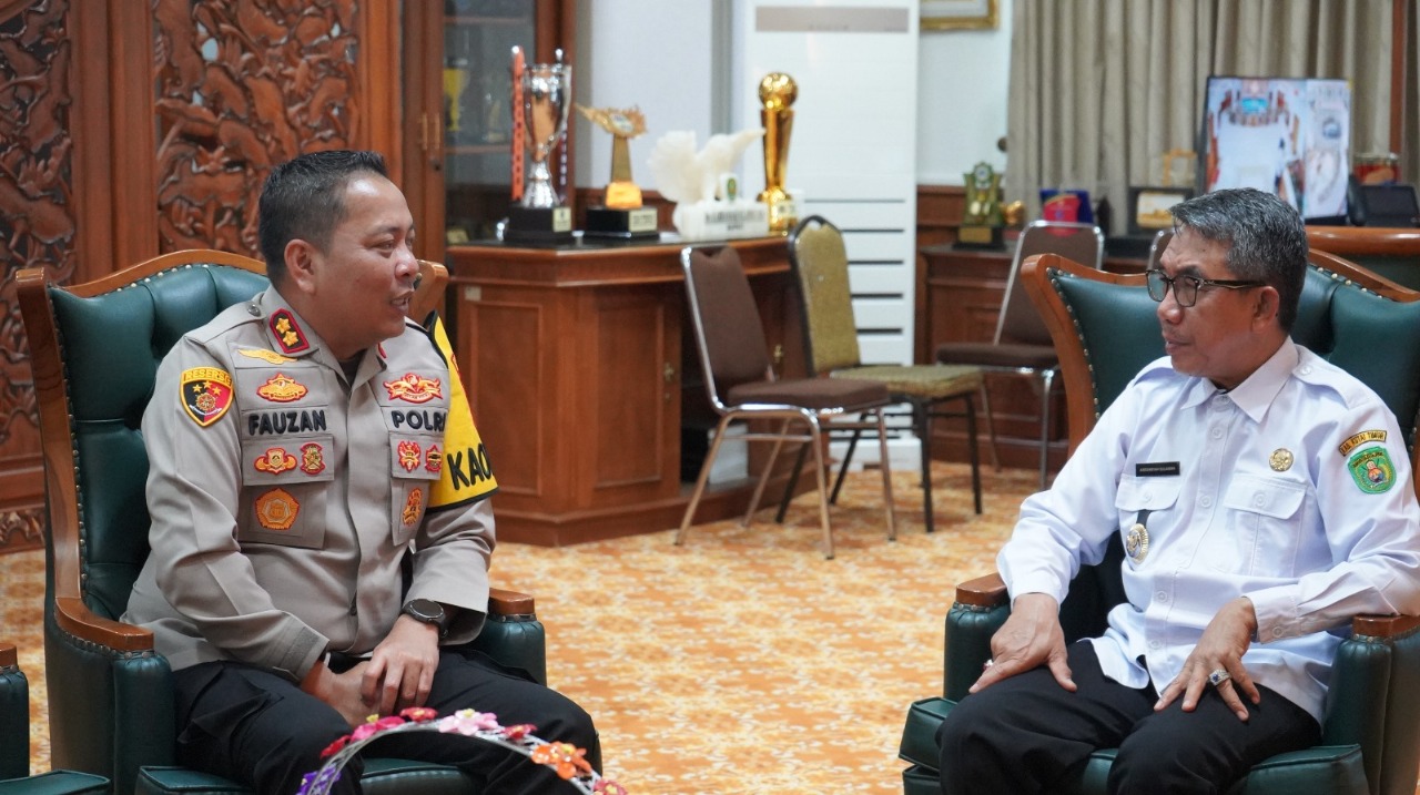 Kapolres Kutai Timur AKBP Fauzan Arianto, S.H., S.I.K., M.H didampingi para Pejabat Utama Polres Kutai Timur melaksanakan kunjungan silaturahmi ke Kantor Bupati Kutai Timur, Kamis (17/7/2025).
