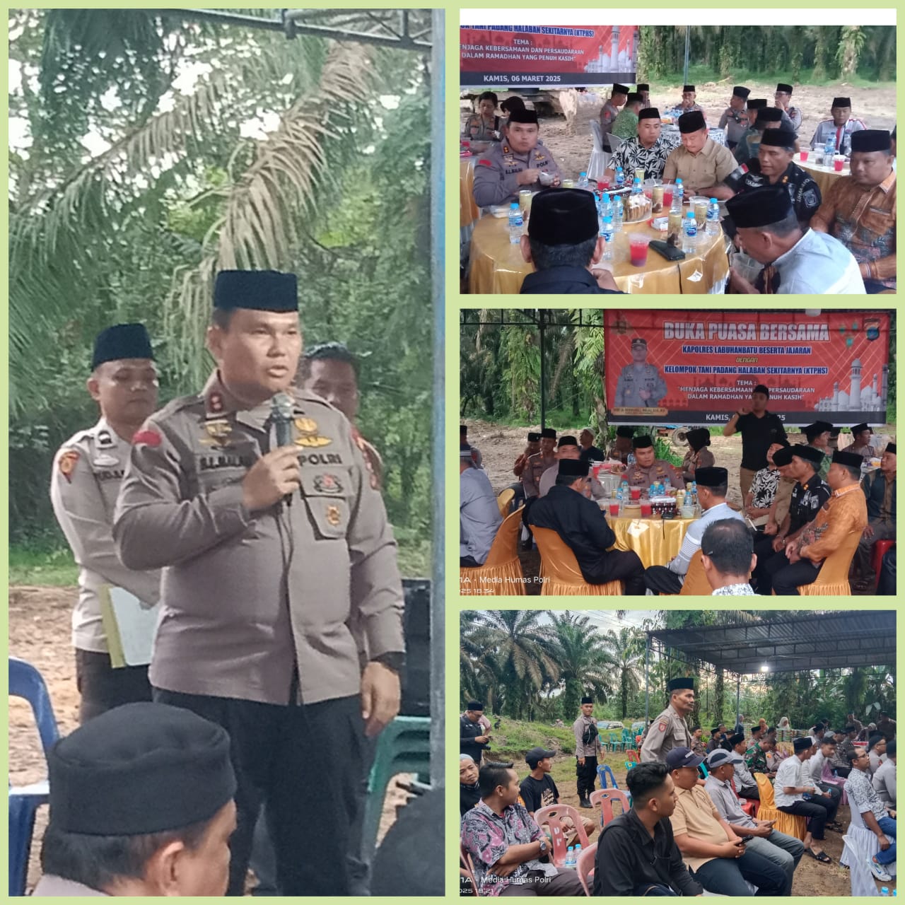 Dalam rangka menjaga Kebersamaan dan Persaudaraan dalam Ramadhan penuh kasih, Kapolres Labuhanbatu AKBP Dr. Bernhard L Malau S.I.K,MH beserta jajaran mengadakan buka puasa bersama di Wilayah Desa Perkebunan Penigoran, Kecamatan Aek Kuo, Kebupaten Labuhanbatu Utara, Kamis (6/3/2025).