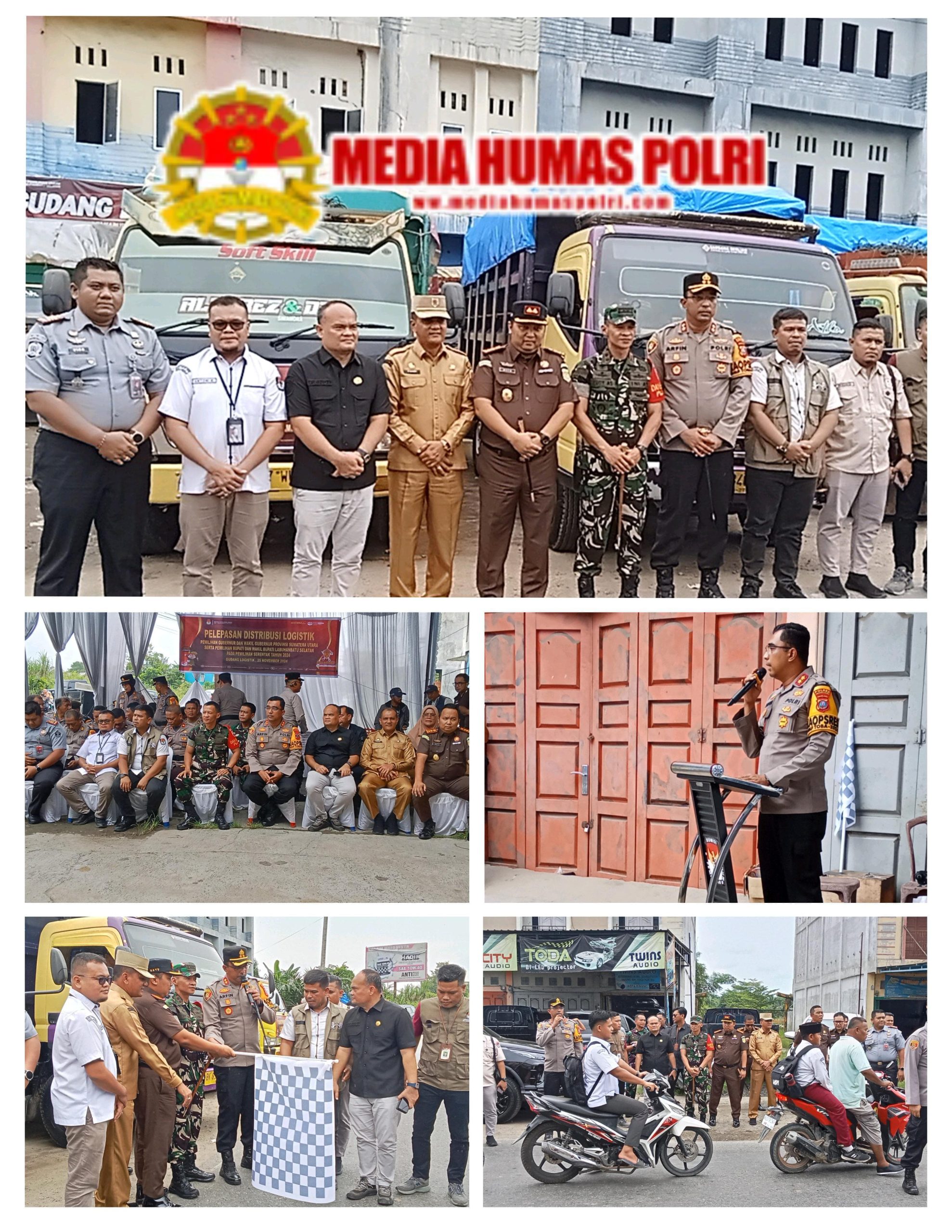 Kapolres Labuhanbatu Selatan AKBP Arfin Fachreza, S.H., S.I.K., M.H., bersama jajaran Forum Koordinasi Pimpinan Daerah (Forkopimda) melepas pergeseran logistik Pemilu serentak 2024 dari Gudang Logistik KPU Labuhanbatu Selatan menuju Panitia Pemilihan Kecamatan (PPK). Acara berlangsung pada Senin (25/11/2024), bertempat di Jalan Lintas Sumatera Kotapinang-Pekan Baru, Lingkungan Kampung Bedagai, Kelurahan Kotapinang, Kecamatan Kotapinang, Kabupaten Labuhanbatu Selatan.