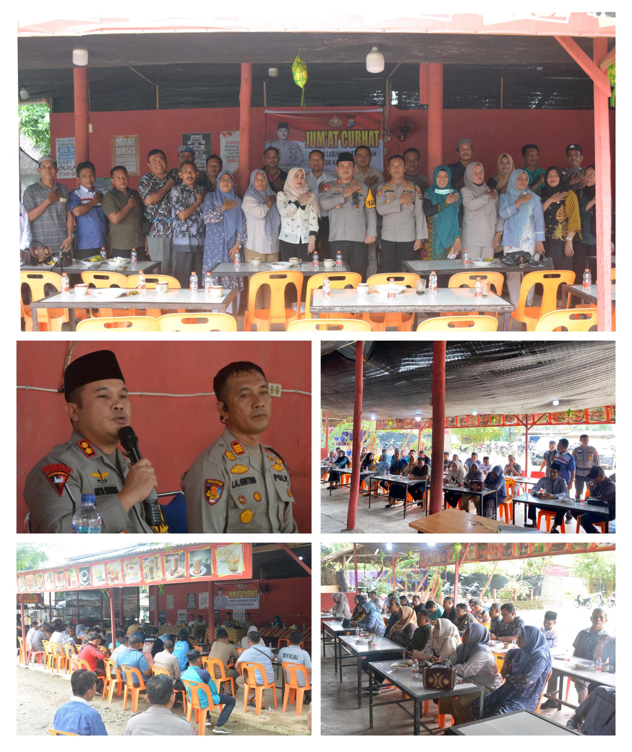 Dalam rangka mempererat hubungan antara Kepolisian dan masyarakat, Kapolres Labuhanbatu Selatan, AKBP Aditya S.P. Sembiring Muham, S.I.K., menggelar kegiatan *”Jumat Curhat”* di Warung Mie Aceh Panglima yang terletak di jalan lintas Sumatera Kotapinang-Rantau Prapat, Desa Perkebunan Tolan, Kecamatan Kampung Rakyat, Kabupaten Labuhanbatu Selatan, Jumat (11/4/2025).