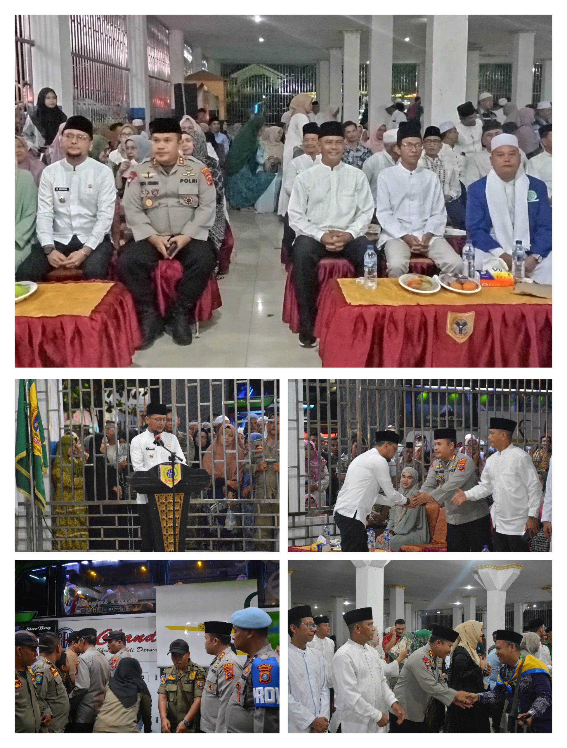 Kapolres Labuhanbatu Selatan, AKBP Aditya S.P. Sembiring Muham, S.I.K., bersama Bupati Labuhanbatu Selatan, Fery Sahputra Simatupang, S.H., menghadiri acara pemberangkatan calon jemaah haji asal Kabupaten Labuhanbatu Selatan pada Senin malam (19/5/2025) sekitar pukul 20.30 WIB. Acara berlangsung di Pendopo SBBK, Jalan Lintas Sumatera, Kelurahan Kotapinang, Kecamatan Kotapinang, Kabupaten Labuhanbatu Selatan.