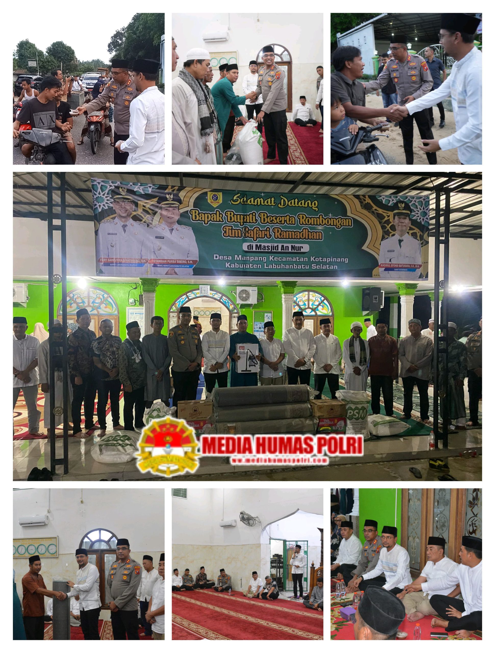 Kapolres Labuhanbatu Selatan, AKBP Arfin Fachreza, S.H., S.I.K., M.H., bersama Bupati Labuhanbatu Selatan, Fery Sahputra Simatupang, S.H., menghadiri kegiatan Safari Ramadhan 1446 H yang diselenggarakan di Masjid An Nur, Dusun 3, Desa Mampang, Kecamatan Kotapinang, Kabupaten Labuhanbatu Selatan, Senin (10/3/2025).