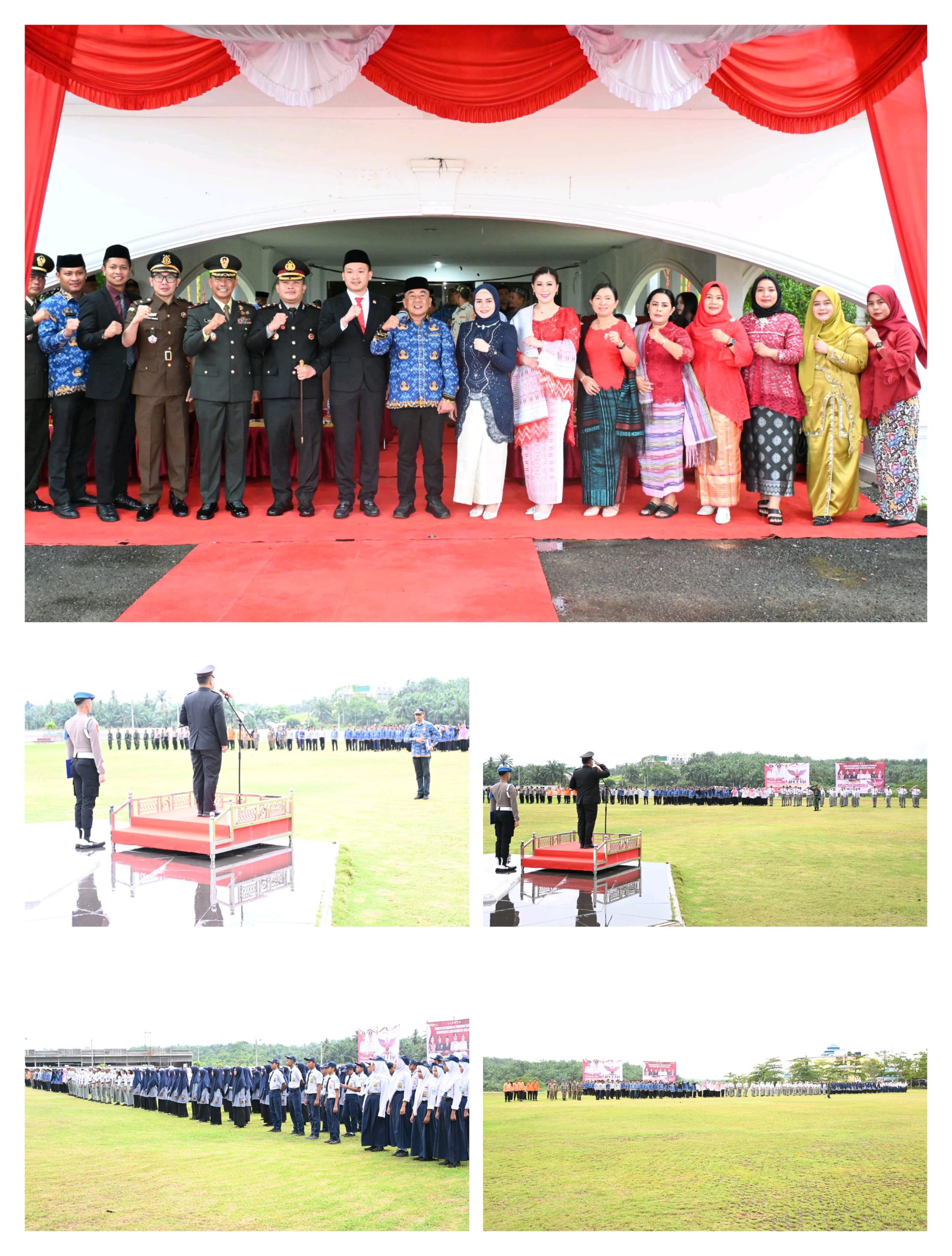 Kapolres Labuhanbatu Selatan, AKBP Aditya S.P. Sembiring Muham, S.I.K., bertindak sebagai Inspektur Upacara pada peringatan Hari Kesaktian Pancasila yang digelar di lapangan Apel Pemkab Labuhanbatu Selatan, Jalan Lintas Sumatera Kotapinang–Gunung Tua, Desa Sosopan, Kecamatan Kotapinang, Kabupaten Labuhanbatu Selatan, Rabu (1/10/2025).