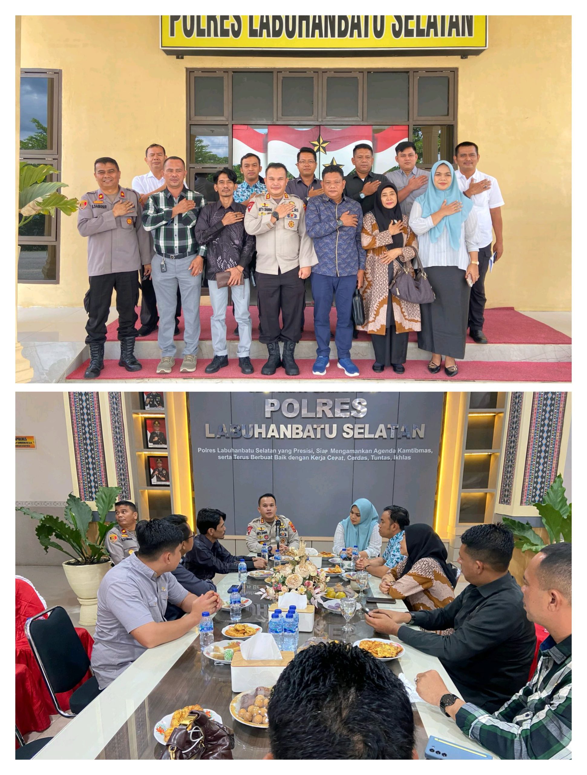 Kapolres Labuhanbatu Selatan, AKBP Aditya S.P. Sembiring Muham, S.I.K., menerima kunjungan silaturahmi dari Komisi III DPRD Labuhanbatu Selatan di lobi Mapolres Labuhanbatu Selatan, Jalan Lintas Sumatera Kotapinang-Gunung Tua, Desa Sosopan, Kecamatan Kotapinang, Kabupaten Labuhanbatu Selatan, Rabu (23/4/2025). Rombongan dipimpin oleh Irma Suryani dari Fraksi Hanura selaku Koordinator Divisi Komisi III DPRD Labuhanbatu Selatan.