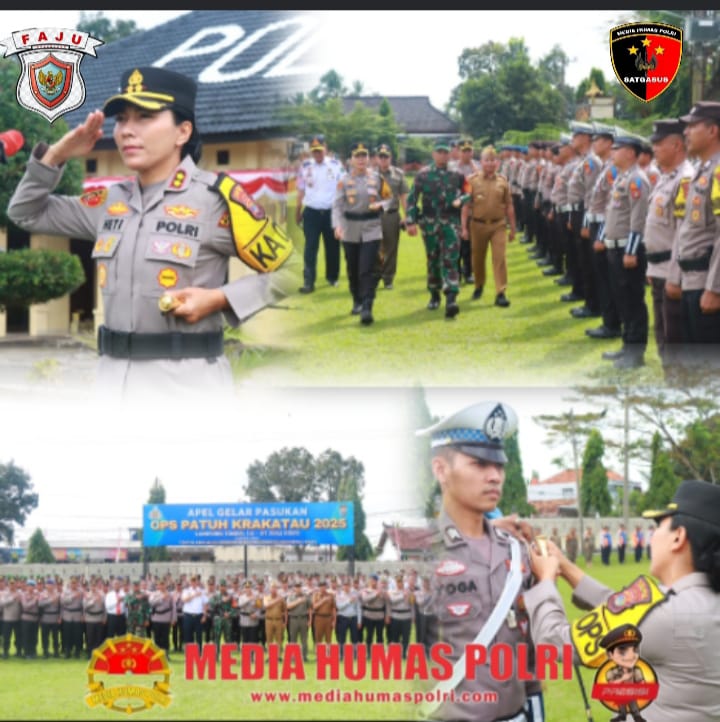 Kapolres Lampung Timur AKBP Heti Patmawati memimpin langsung apel gelar pasukan dalam rangka operasi patuh krakatau 2025, Senin (14/7/25). Kegiatan yang digelar di lapangan satya haprabu Polres Lampung Timur ini turut dihadiri oleh Dandim 0429/Lamtim Letkol Inf. Danang Setiaji serta unsur Forkopimda Kabupaten Lampung Timur.