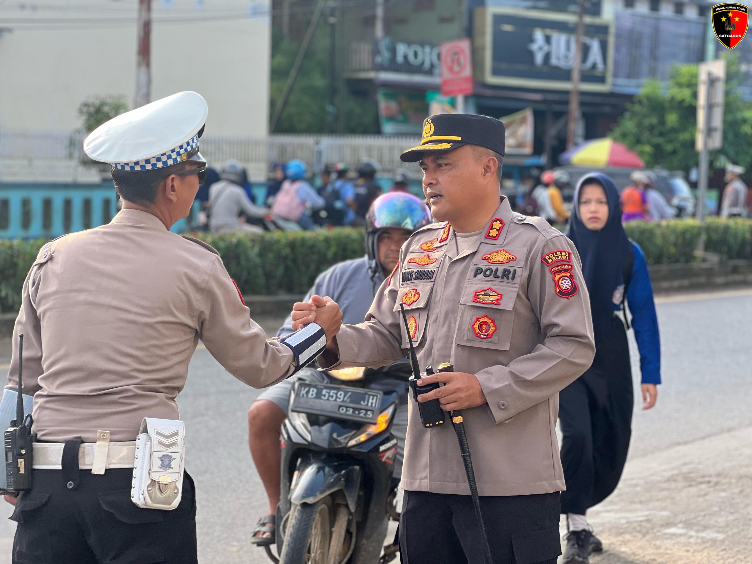 Memastikan Keamanan, Keselamatan, Ketertiban dan Kelancaran Lalu Lintas masyarakat pengguna jalan dilakukan Kapolres Melawi bersama personel Satuan Lantas melakukan pemantauan arus lalu lintas kendaraan, Rabu (30/4/25).