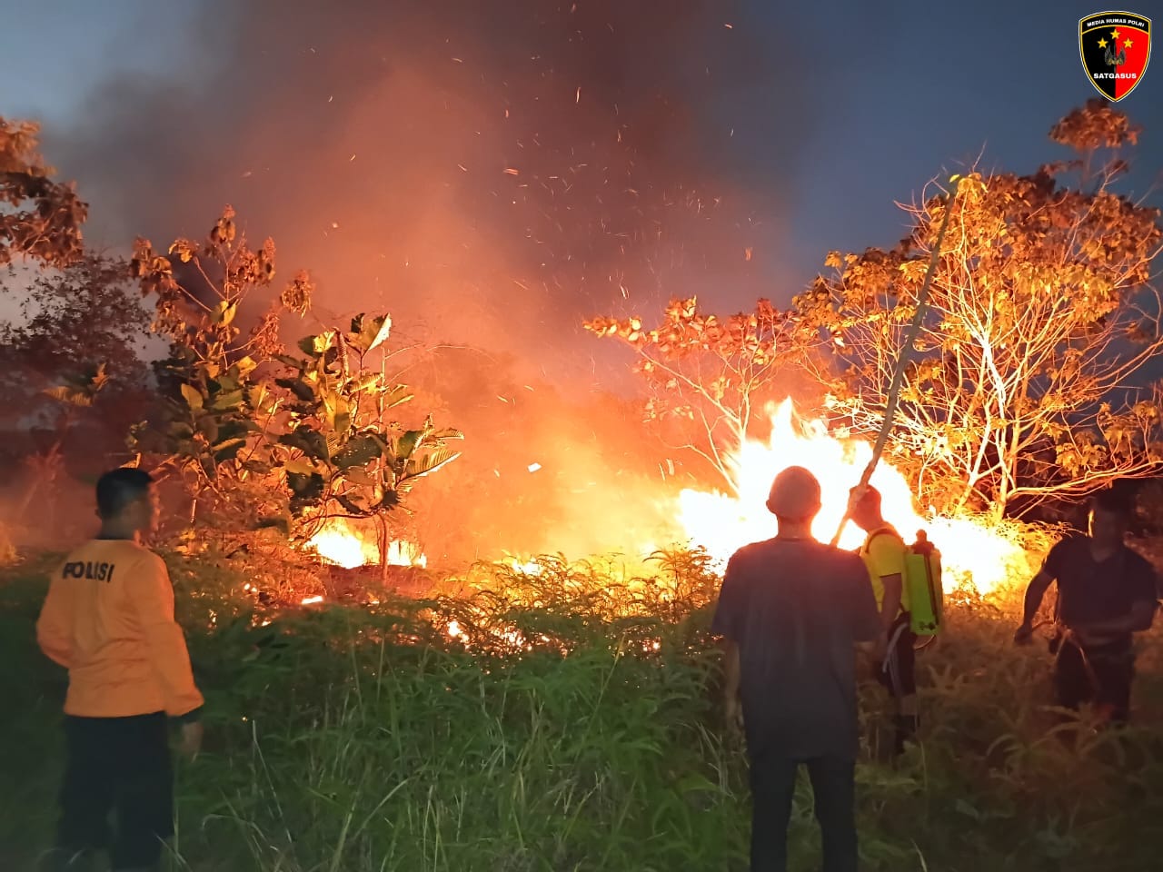 Adanya informasi dari masyarakat tentang terjadinya kebakaran semak belukar di Jalan H.Abdul Hamid km.4 Dusun Sepan Batu Desa Kelakik Kecamatan Nanga Pinoh, Polres Melawi bersama BS-PBK Nanga Pinoh, Damkar Pemkab Melawi dan BPBD Kabupaten Melawi, Polsek Nanga Pinoh dan masyarakat peduli api bekerja keras berjibaku memadamkan api di pimpin langsung Kapolres Melawi AKBP Harris Batara Simbolon, S.I.K., S.H., M.Tr.Opsla, Senin (28/7/25) petang.