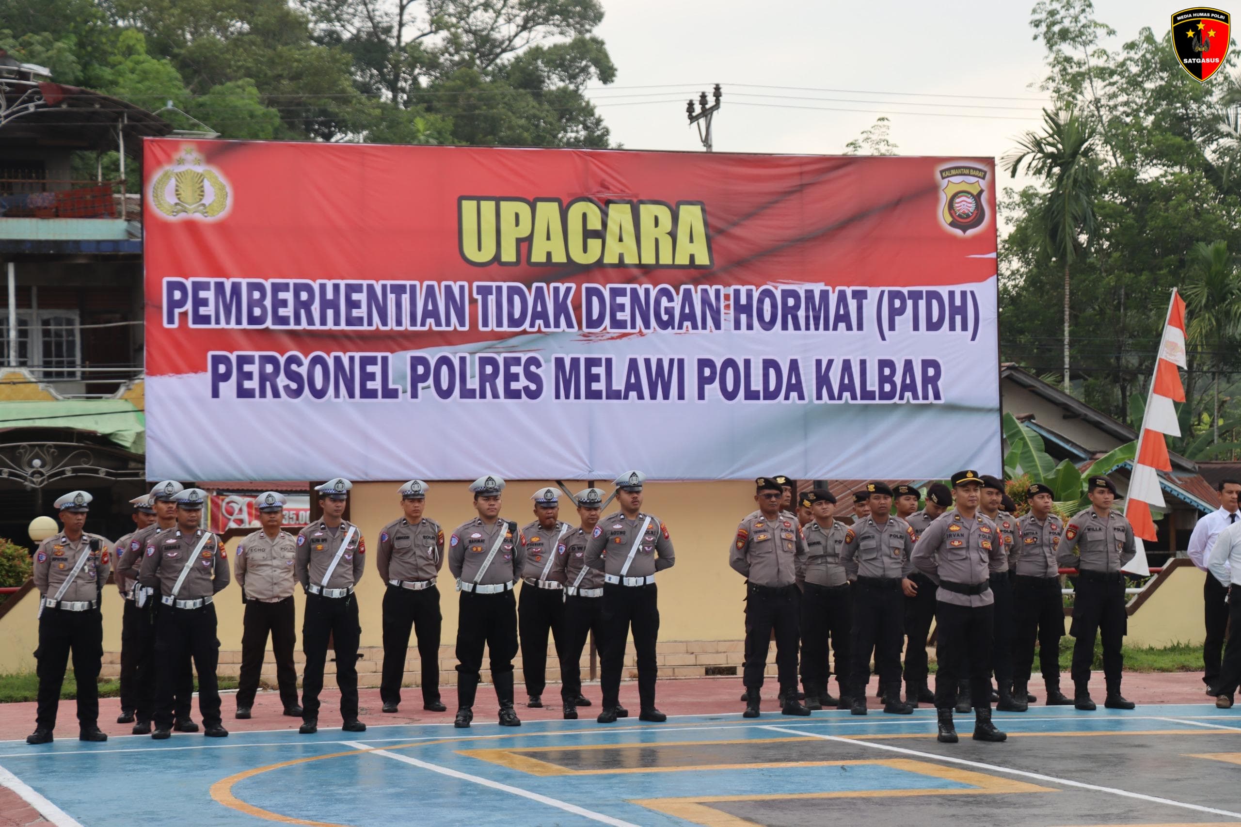 Pemberhentian Tidak Dengan Hormat (PTDH) Bripka Yudi Mastanto personel Polres Melawi di pimpin langsung Kapolres Melawi AKBP Harris Batara Simbolon, S.I.K., S.H., M.Tr.Opsla di lapangan apel bhayangkara, Jumat (8/8)