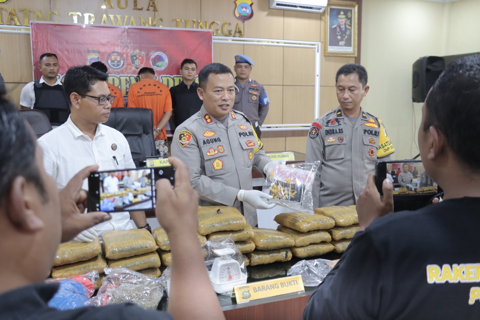 Kepolisian Resor Pasaman Barat, Sumatera Barat menggelar konferensi pers terkait pengungkapan kasus Narkotika golongan I jenis ganja kering sebanyak 30 kilogram dan sabu, yang dilaksanakan di Aula Mapolres Pasaman Barat, Rabu (13/11/2024).