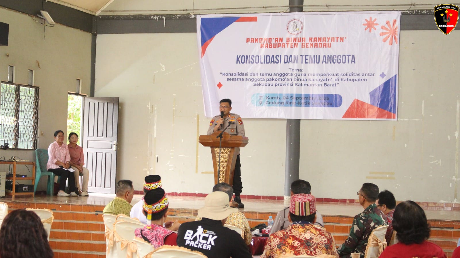 Kapolres Sekadau AKBP Donny Molino Manoppo menghadiri Konsolidasi dan Temu Anggota Pakomo’an Binua Kanayatn Kabupaten Sekadau yang berlangsung di Gedung Kateketik, Jalan Merdeka Selatan, Kecamatan Sekadau Hilir, Kamis (4/9/2025).