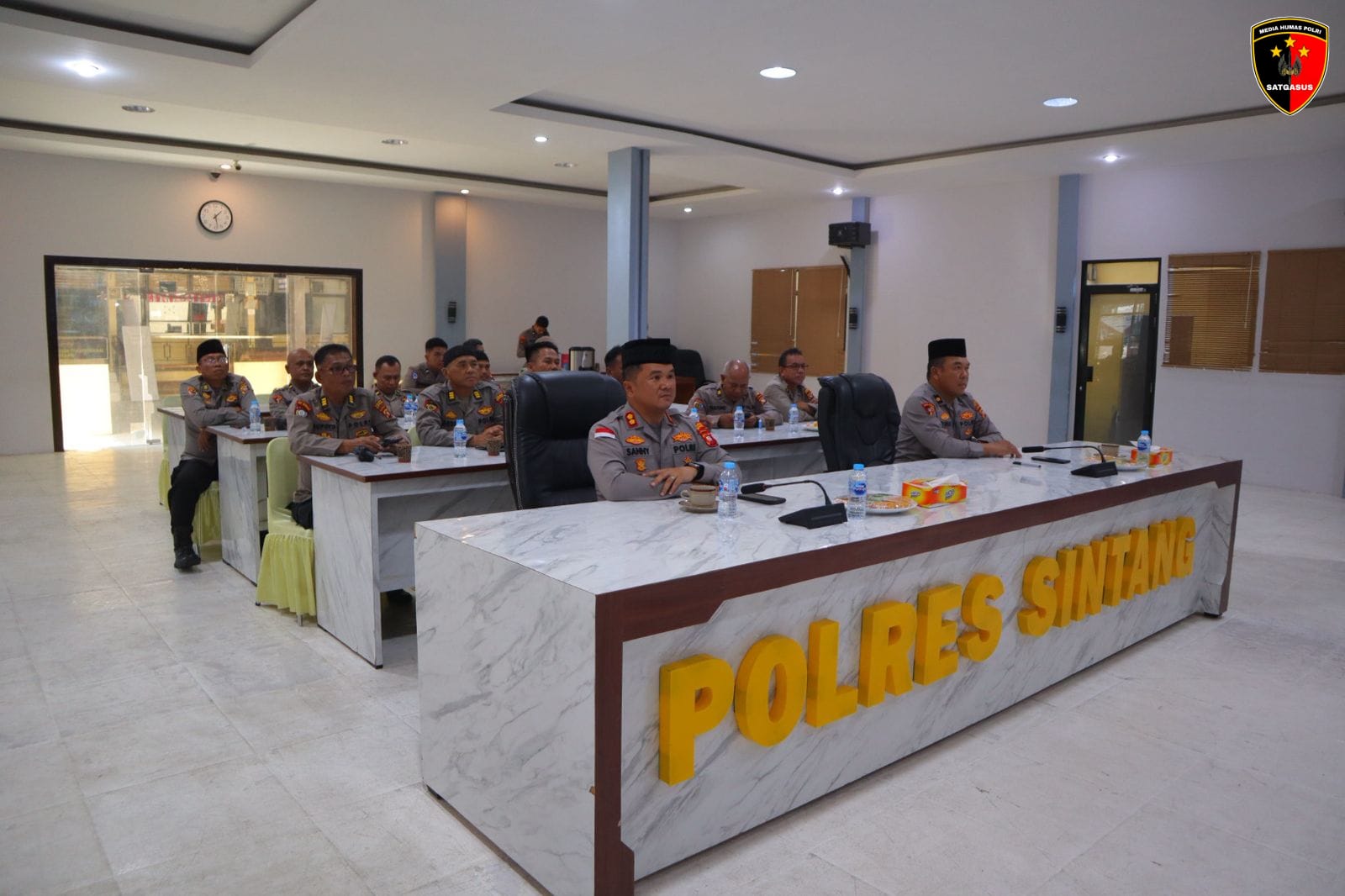 Kapolres Sintang AKBP Sanny Handityo, S.H., S.I.K bersama Pejabat Utama Polres Sintang mengikuti kegiatan bimbingan rohani dan mental yang digelar secara virtual oleh Mabes Polri, Jumat (26/9/2025).