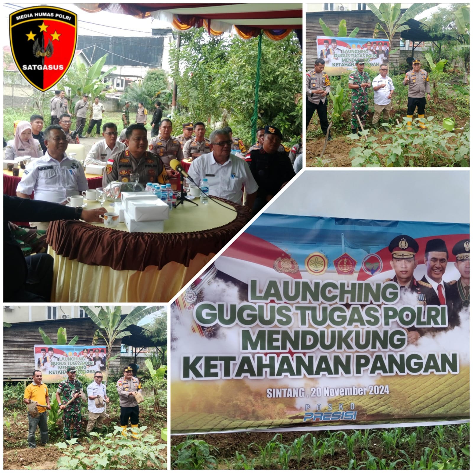 Dalam rangka mendukukung Program ” ASTA CITA ” Presiden Prabowo Subianto yg salah satunya adalah untuk mewujudkan swasembada pangan yang harus dilaksanakan dalam tempo yang sesingkat-singkatnya. Kapolres Sintang beserta PJU Polres Sintang dengan didampingi oleh unsur Forkompimda Sintang serta Dinas terkait mengikuti acara ” Launcing Gugus Tugas Polri Mendukung Ketahanan Pangan ” secara virtual yang dipimpin langsung oleh Kapolri Jenderal Polisi Drs. Listyo Sigit Prabowo, M. Si., dan Panglima TNI Jenderal. TNI. Agus Subianto secara serentak diseluruh penjuru Tanah Air. Rabu, ( 20/11) 24 )