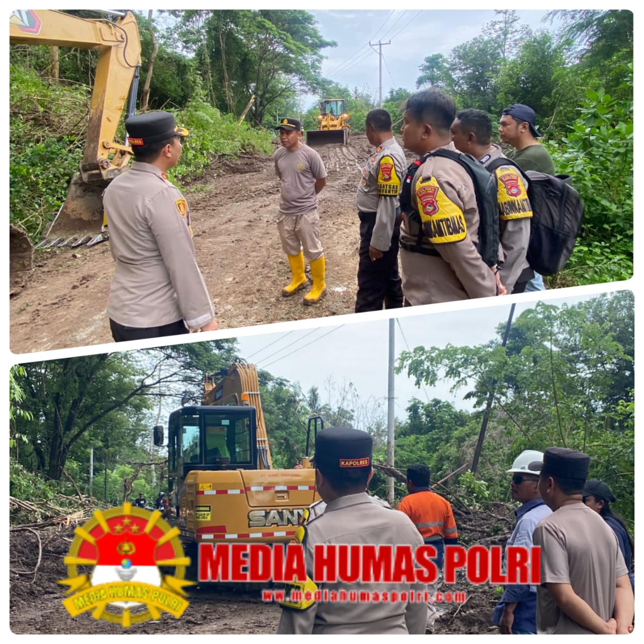 Kapolres Sumbawa Barat, AKBP Yasmara Harahap S.I.K. setelah mendapat laporan dari Kapolsek Sekongkang langsung mengecek lokasi tepatnya di blok Sinyur Desa Sekongkang Bawah Kec. Sekongkang dan berkoordinasi dengan PT. AMNT untuk dapat membantu alat berat guna pembersihan tanah longsor dari bukit yang menutup jalan.