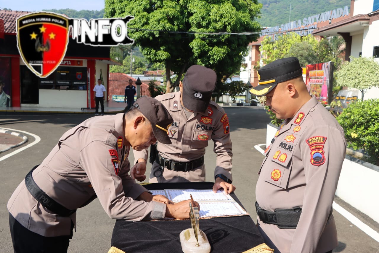 Kapolsek Puhpelem dan Kapolsek Giriwoyo yang telah purna tugas diserahkan jabatannya kepada pejabat sementara sambil menunggu penunjukan definitif dari Polda Jawa Tengah.